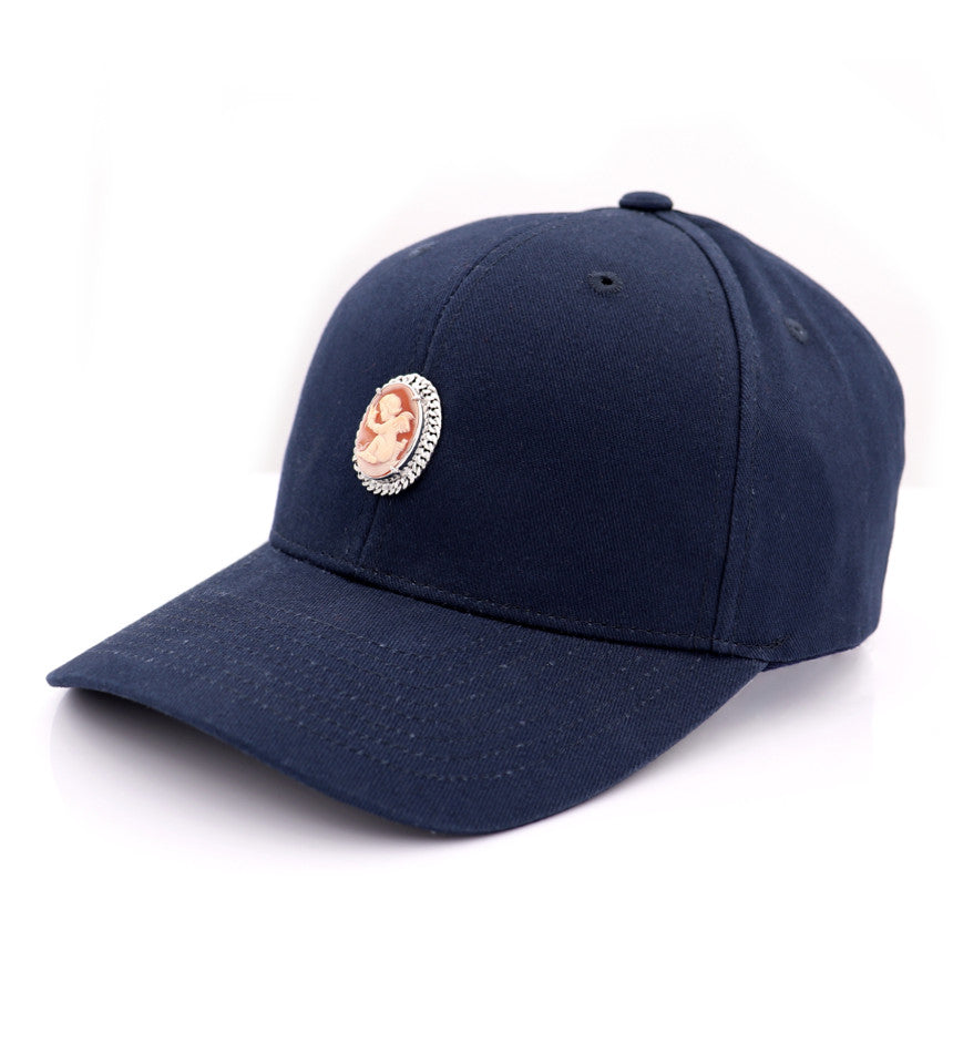 Un'audace fusione di lusso e street style casual: questo esclusivo berretto blu navy è impreziosito da un cammeo finemente intagliato, che aggiunge un inaspettato tocco di raffinatezza a un accessorio classico. Il cammeo intagliato a mano raffigura una figura delicata, incorniciata da una montatura in argento, che la rende il punto focale di questo elegante pezzo.