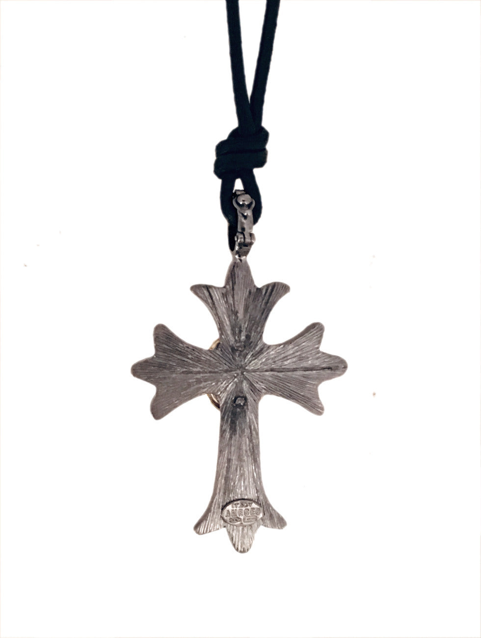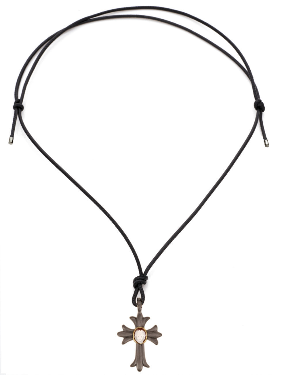 Metallo : Catena nera in oro giallo 18kt e argento sterling, cordino in pelle nera estensibile da 18" a 35"