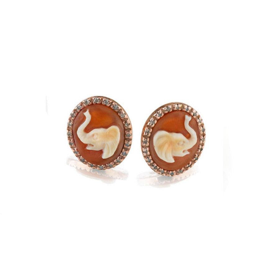 Realizzata con precisione, la tecnica del cammeo esalta i dettagli raffinati dei lineamenti degli elefanti, catturando la bellezza e la grazia di questi gentili giganti. I cristalli circostanti aggiungono un tocco di glamour, rendendo questi orecchini perfetti sia per l'uso quotidiano che per le occasioni speciali. La loro montatura rotonda dai toni caldi si abbina splendidamente all'intricato intaglio simile all'avorio, creando un armonioso mix di tradizione ed eleganza moderna.