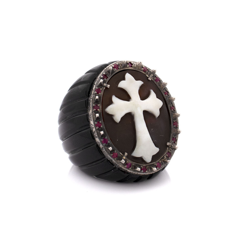 L'anello con cammeo "Croce Sacra" è più di un semplice gioiello: è un'espressione di fede senza tempo, un simbolo di forza e convinzione, indossato al polso. È pensato per chi è attento al profondo simbolismo della croce e alla delicata lavorazione artigianale della tradizionale arte del cammeo.