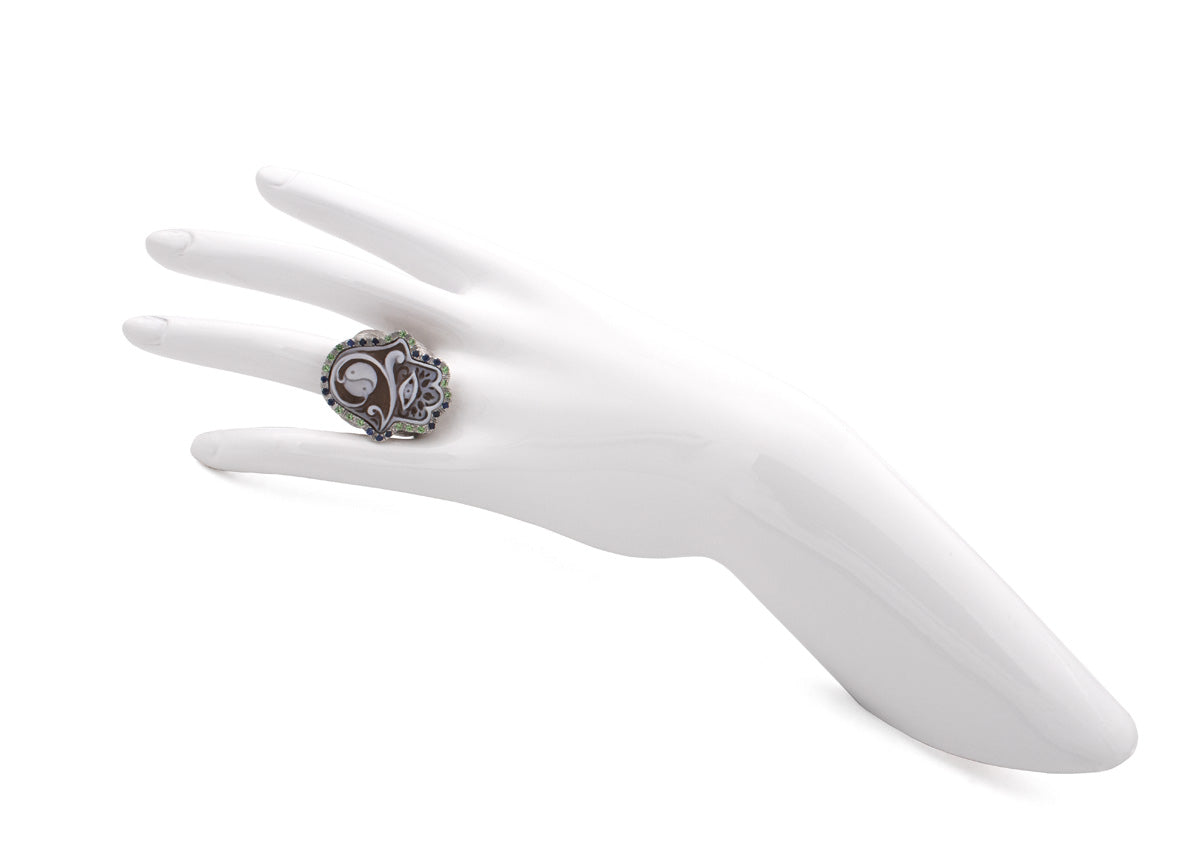 Pietre: zaffiri blu da 0,27 ct e tsavoriti da 0,27 ct