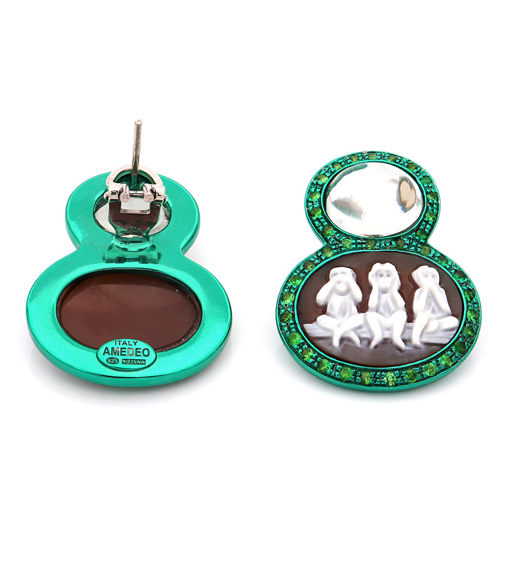 Questo eccezionale pezzo raffigura le "Tre Scimmie Sagge", l'intramontabile proverbio giapponese: non vedere il male, non sentire il male, non parlare del male. Il cammeo è una testimonianza di maestria artigianale, con ogni scimmia finemente scolpita nei minimi dettagli, incarnando saggezza, consapevolezza ed equilibrio.