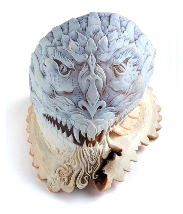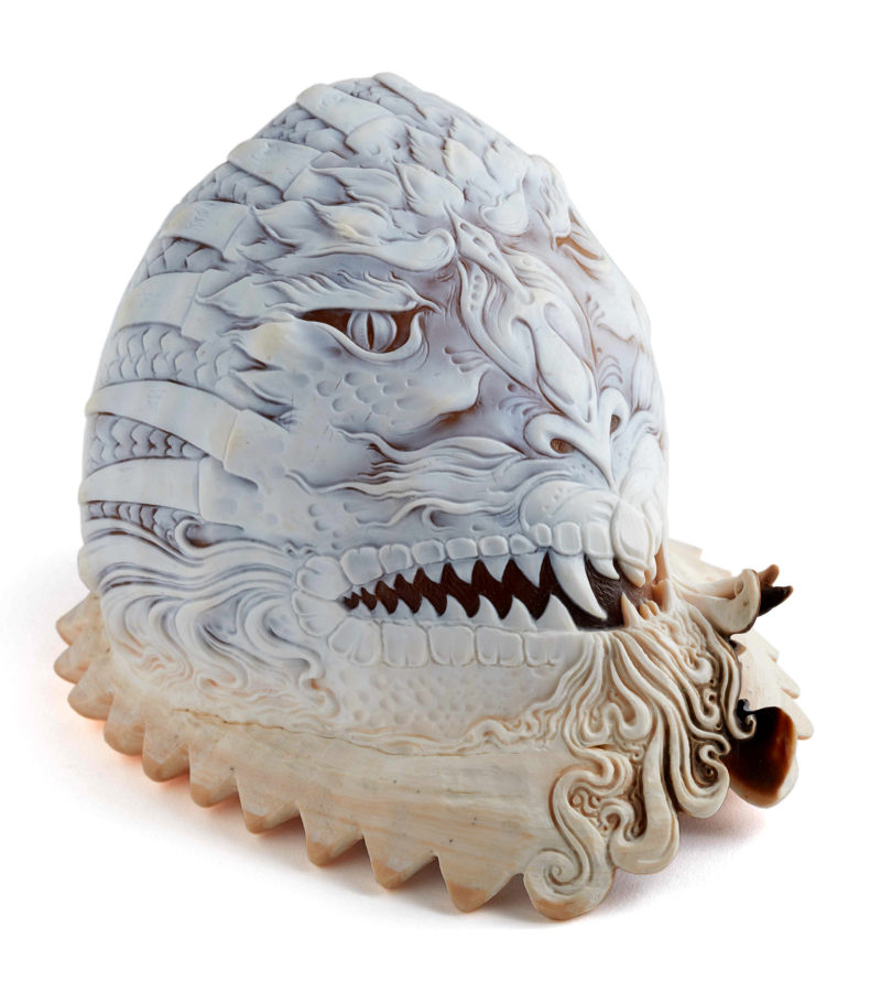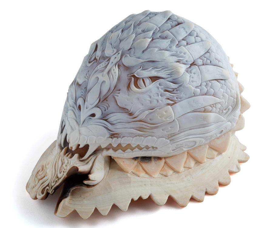 Conchiglia: Cassis Madagascariensis, scolpita a mano. Pezzo unico.