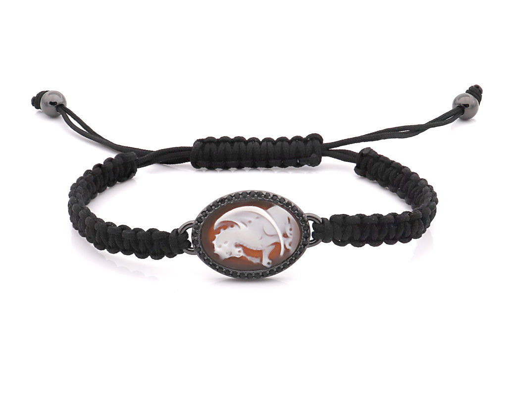 Cameo: cammeo in conchiglia sardonica da 18 mm intagliato a manoColore del metallo: tono ematite