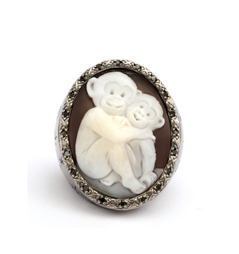 Cameo: cammeo in conchiglia sardonica da 30 mm intagliato a mano