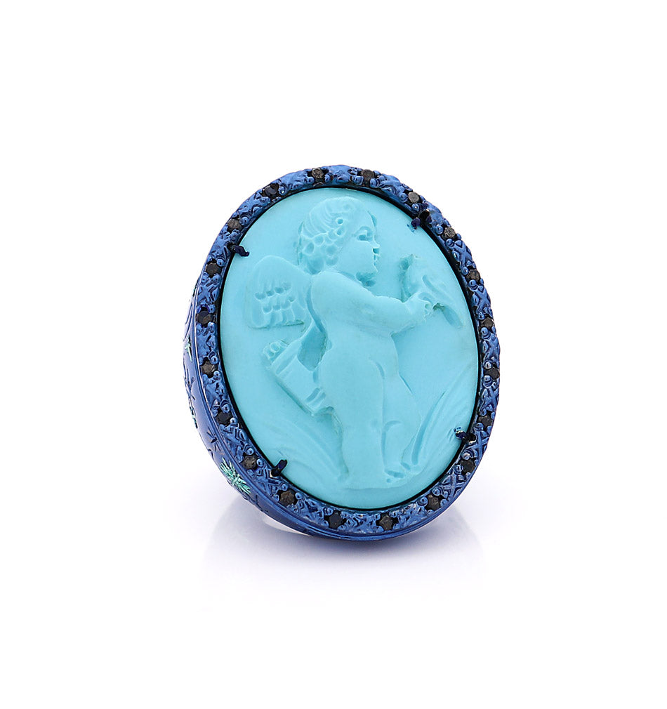 Cammeo : Cammeo turchese da 30 mm intagliato a mano