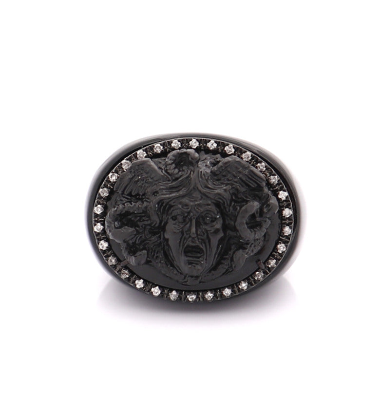 Cammeo : Marmo nero belga da 25 mm intagliato a mano
