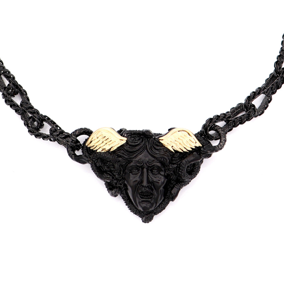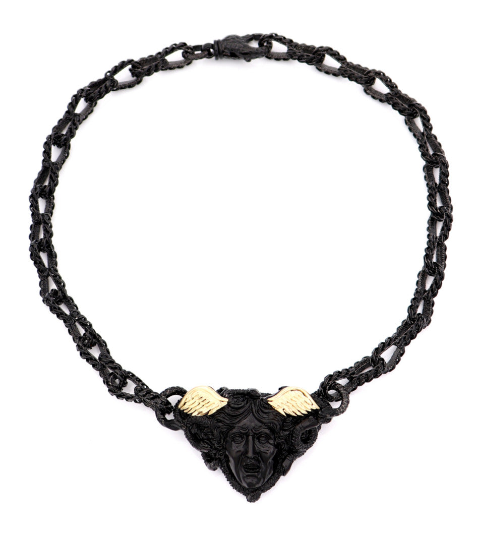 Metallo: oro 18kt e argento sterling nero rodio - lunghezza catena 17,40"