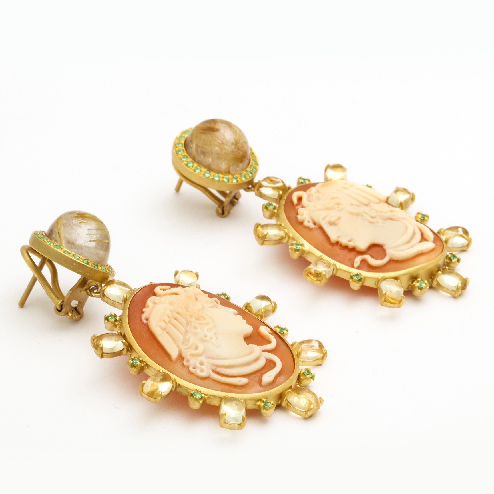 Pietre: tsavoriti, quarzo trasparente e cabochon di quarzo rutilato