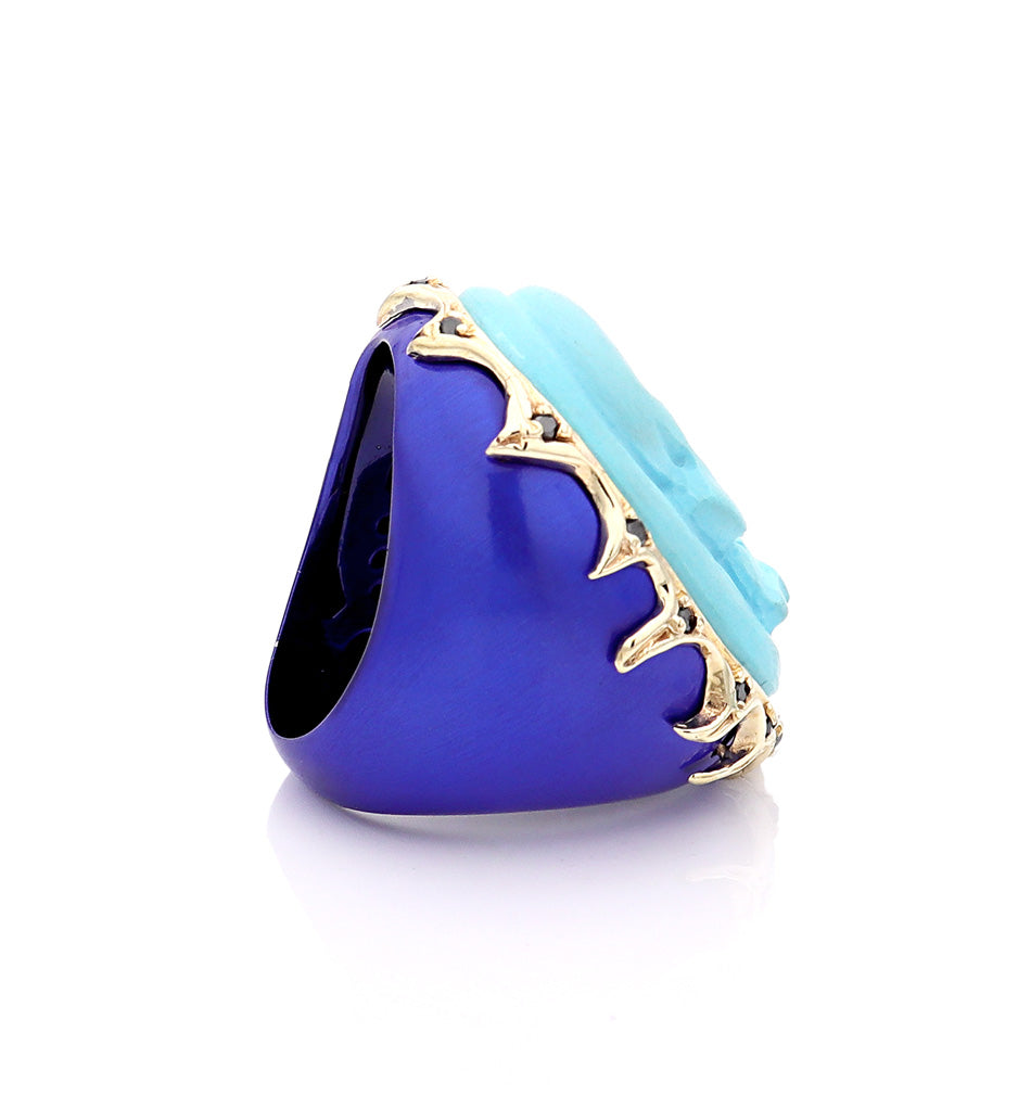 Cammeo : Cammeo in conchiglia turchese da 30 mm intagliato a mano