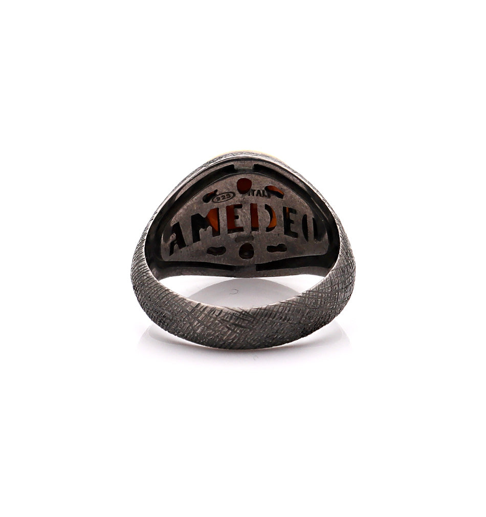 Cameo: cammeo in conchiglia sardonica da 10 mm intagliato a manoMetallo: oro 18kt e argento sterling rodiato nero