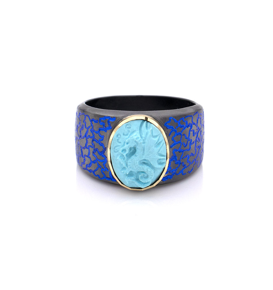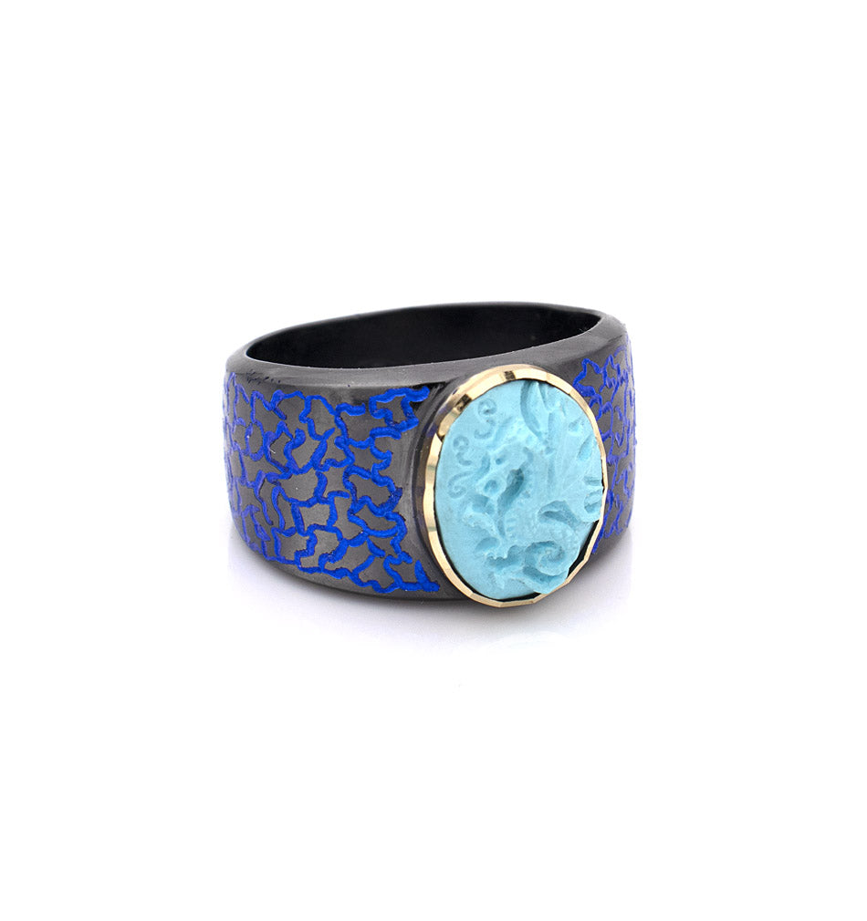Cameo: cammeo turchese da 12 mm intagliato a mano