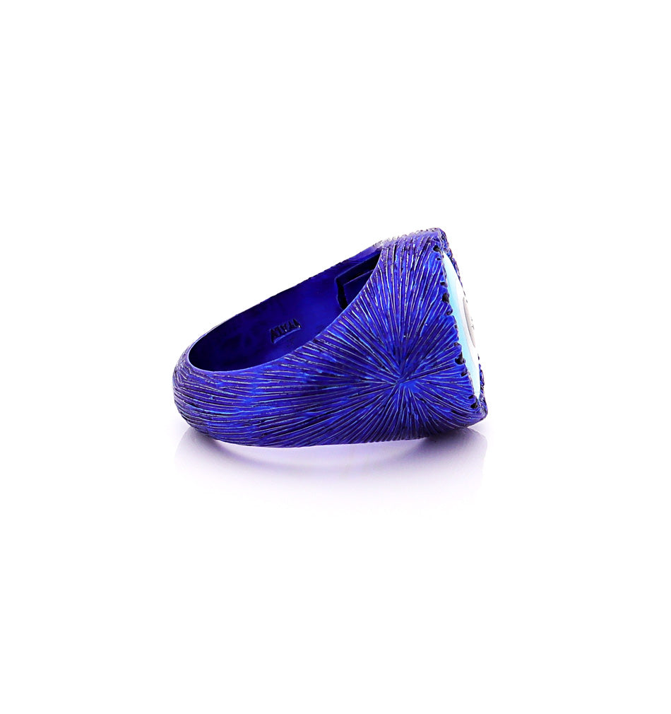 Pietre: madreperla, turchese e onice, zaffiri blu da 0,11 ct
