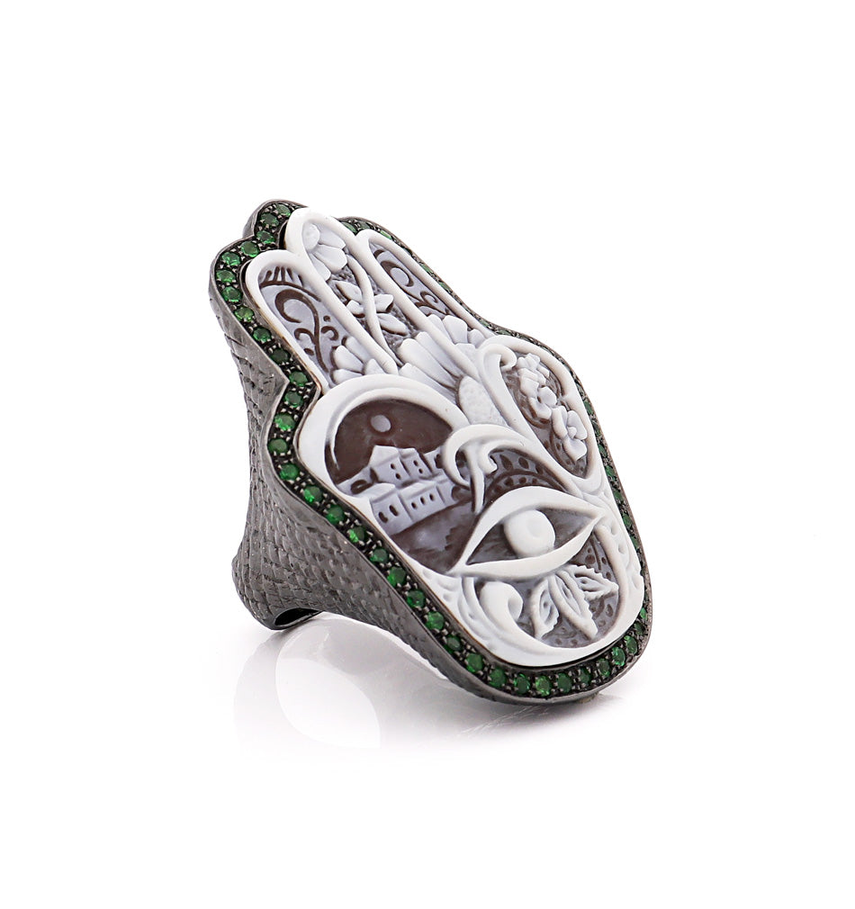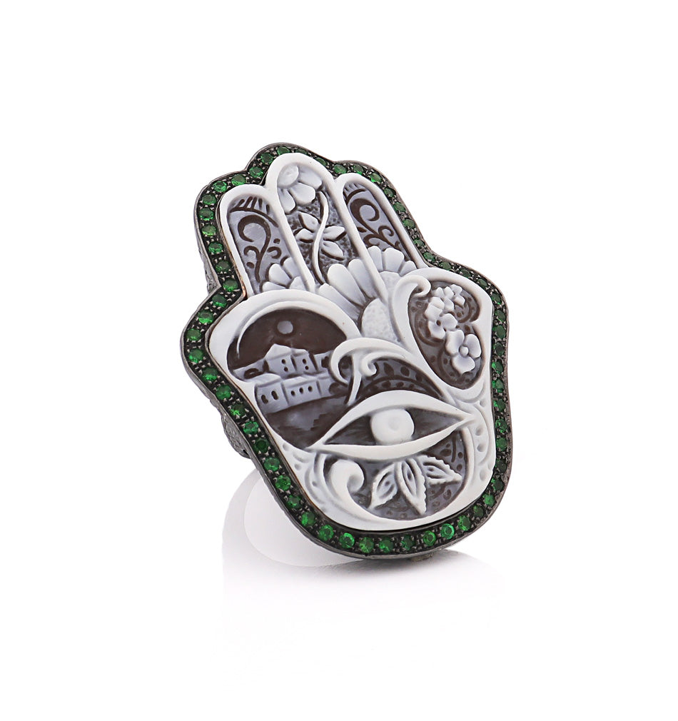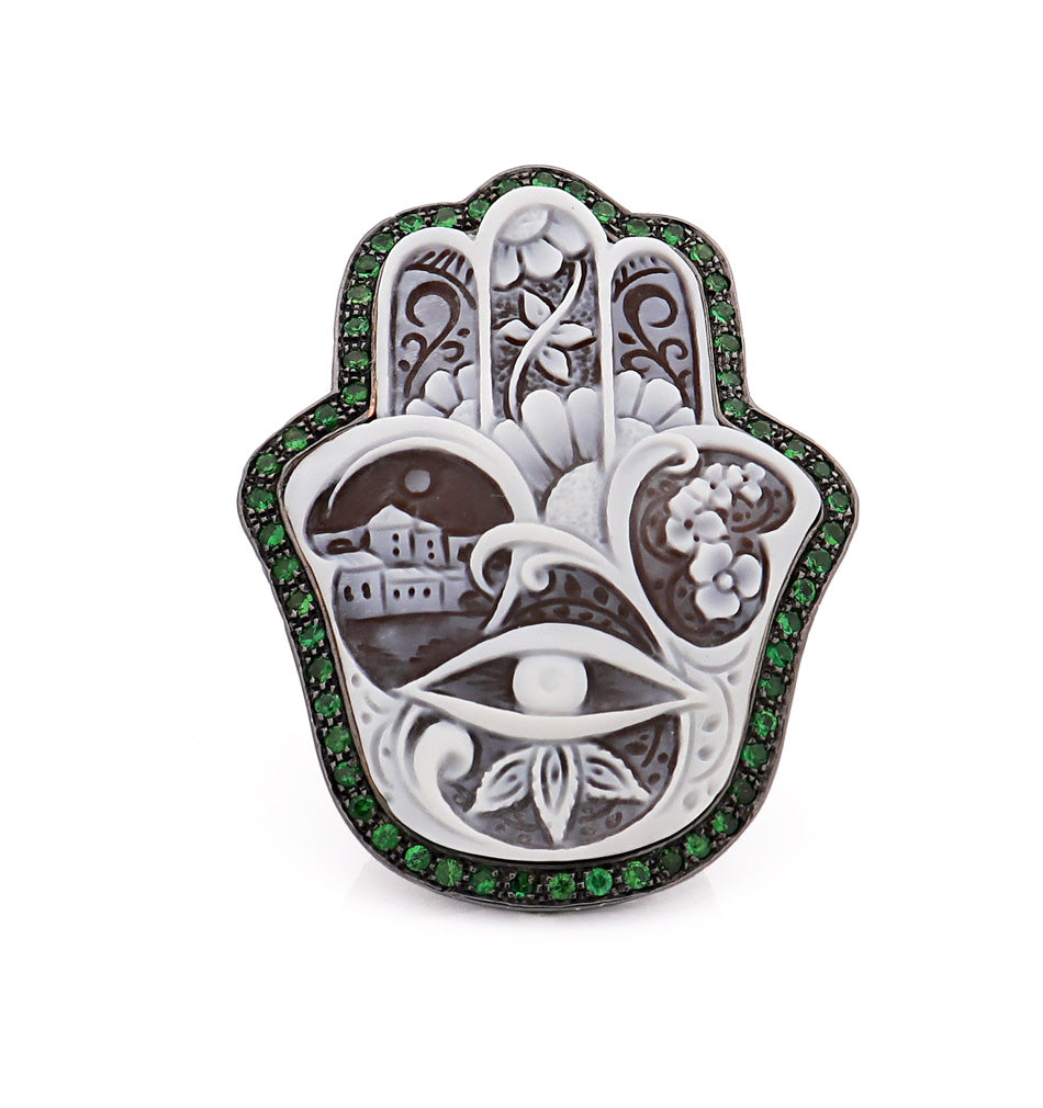 Cameo: cammeo in conchiglia sardonica da 50 mm intagliato a mano