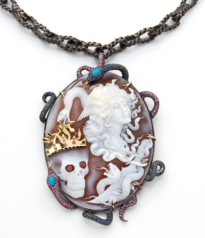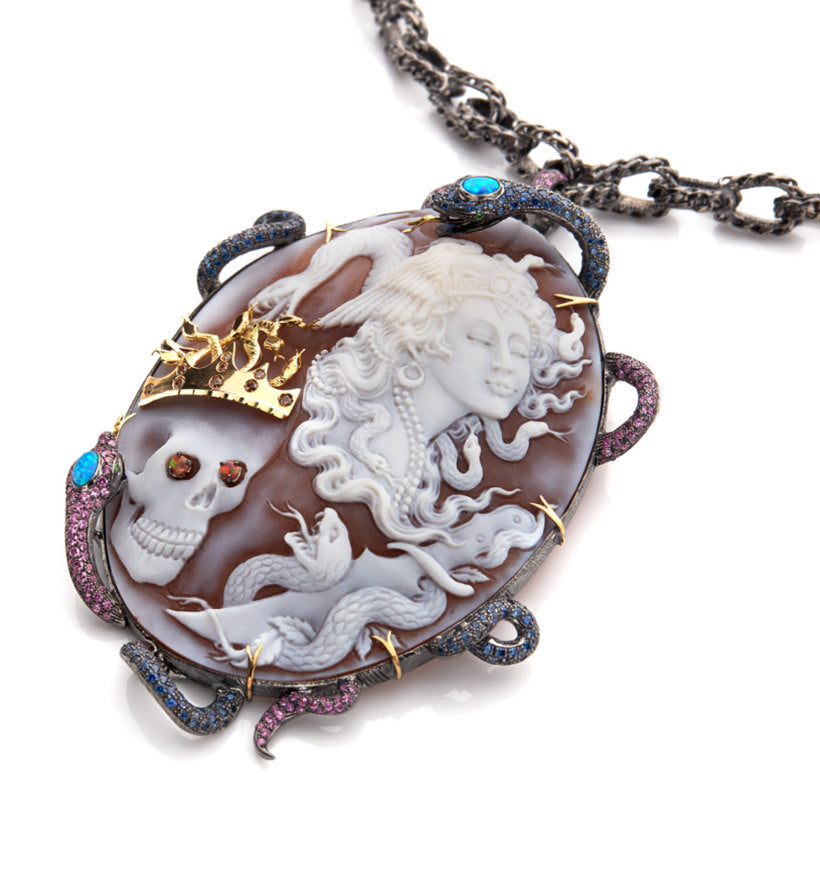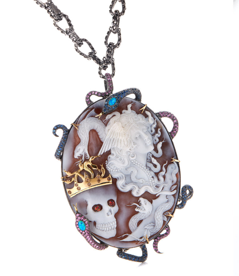 Pietre: Diamanti marroni da 0,27 ct, zaffiri blu da 2,15 ct, zaffiri rosa da 1,72 ct, opali blu australiani, opali di fuoco australiani e tsavorite da 0,04 ct