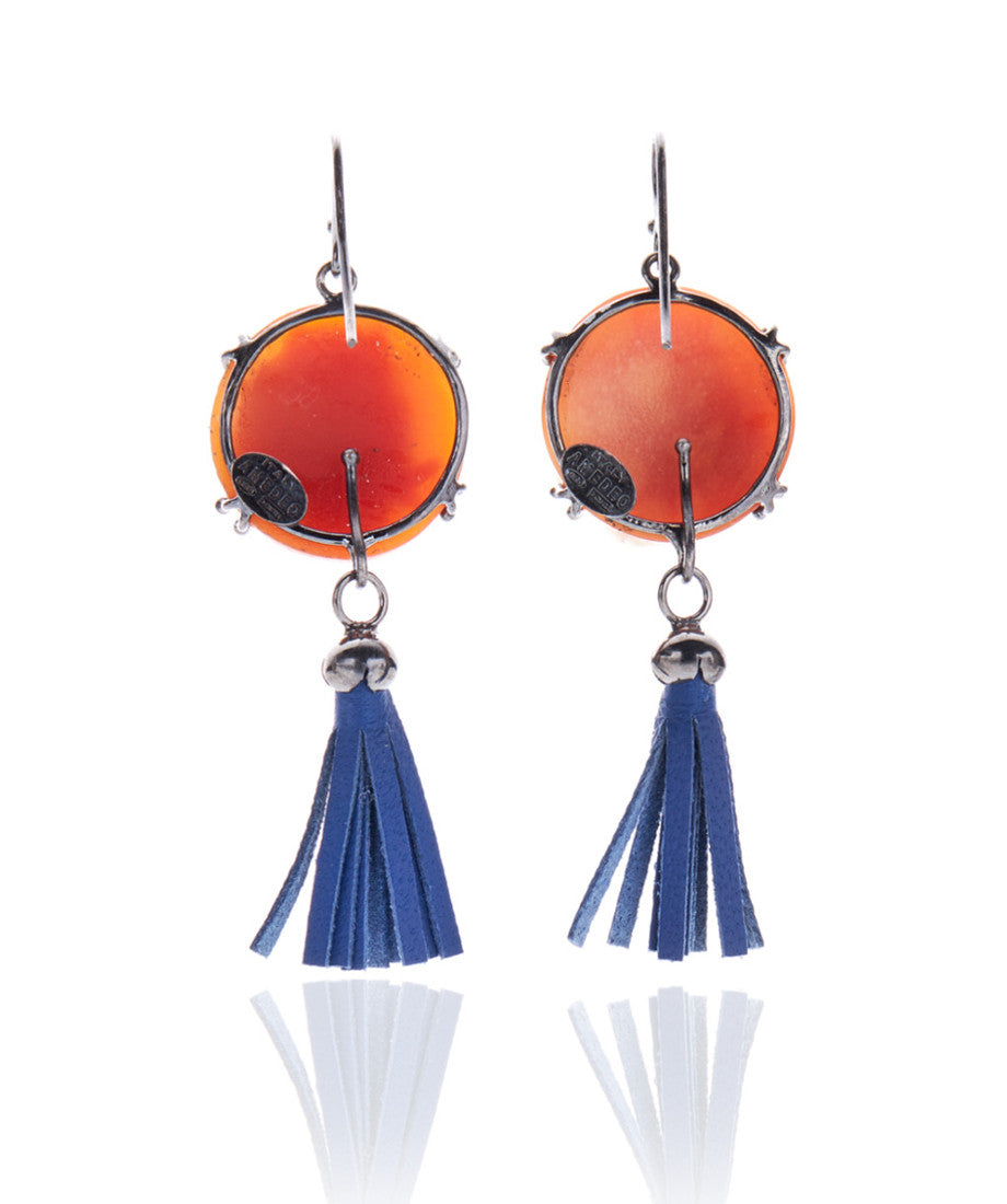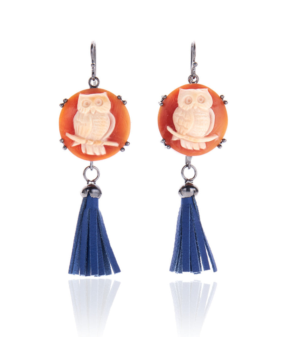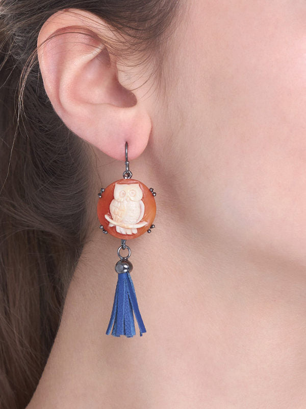 Cameo: cammei in conchiglia di corniola da 20 mm, intagliati a manoMetallo: argento sterling rodiato nero e pelle blu