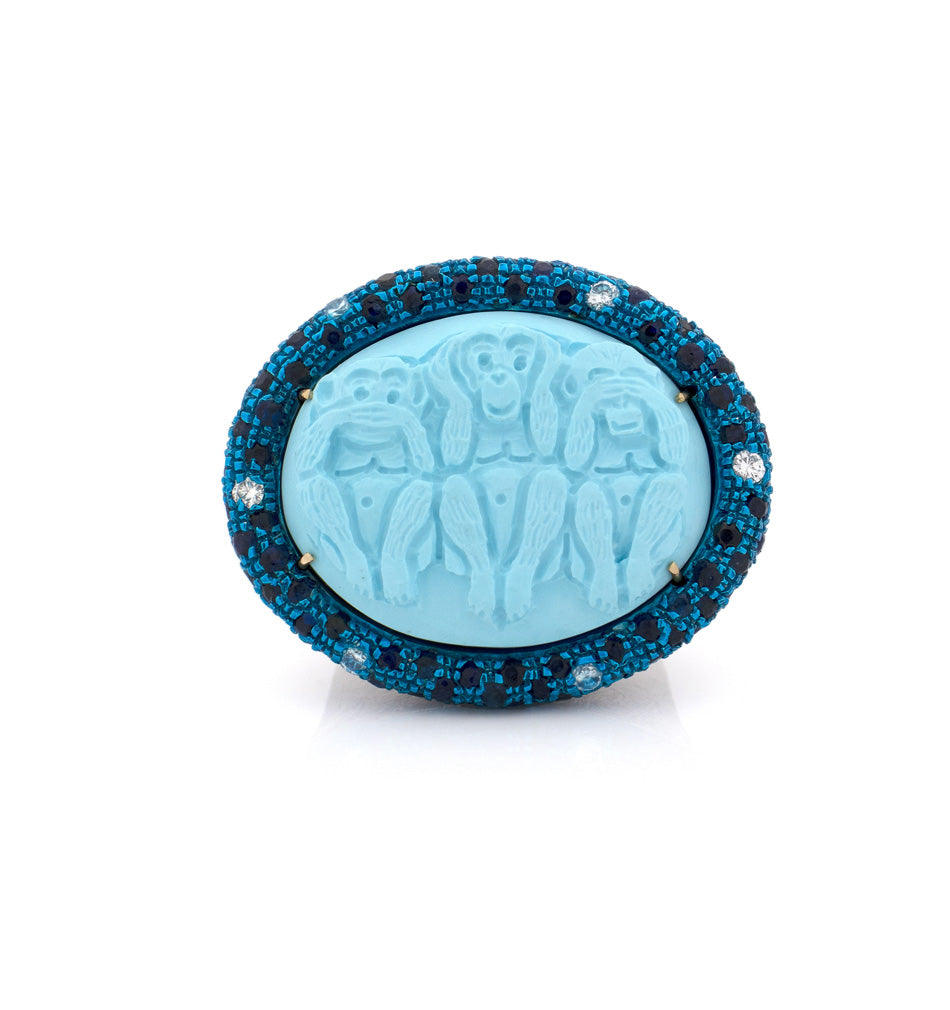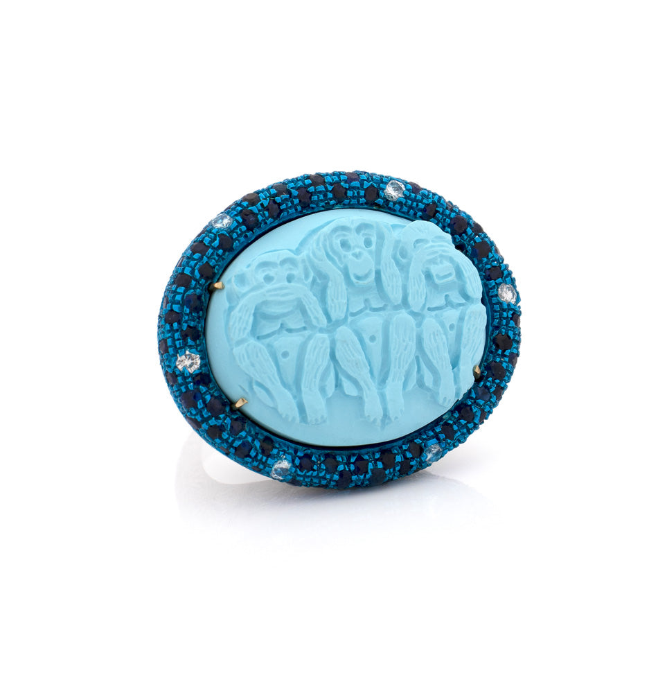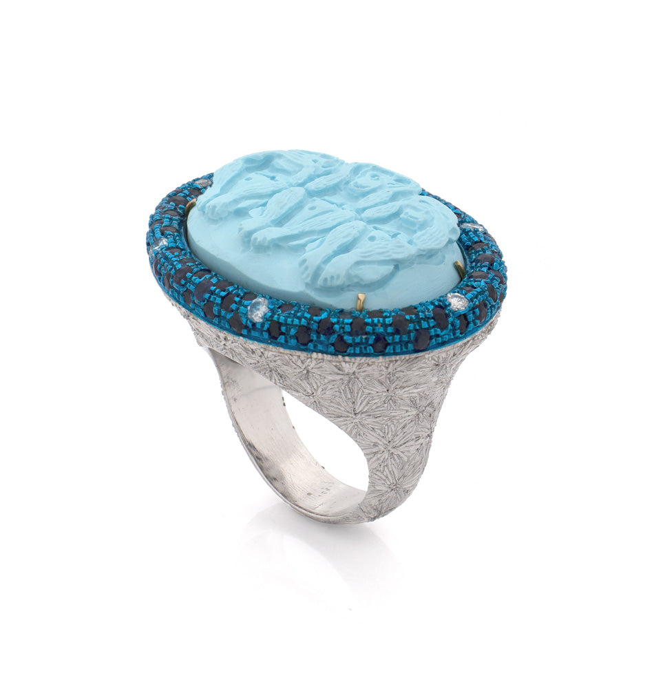 Cammeo : Cammeo turchese da 25 mm intagliato a mano