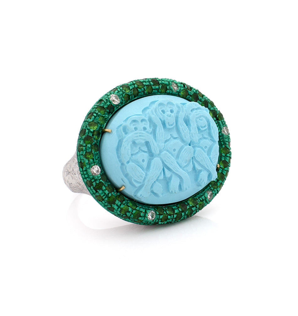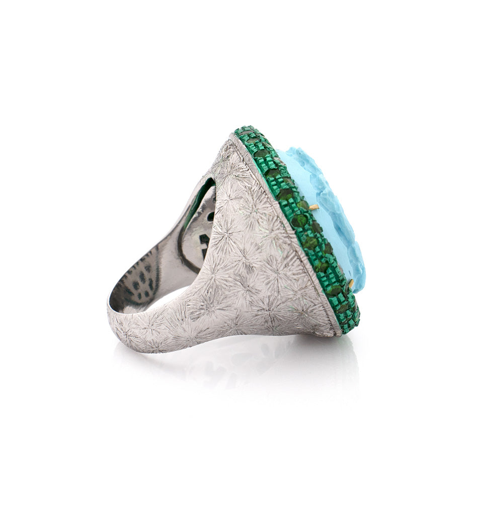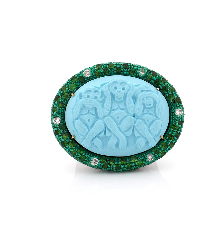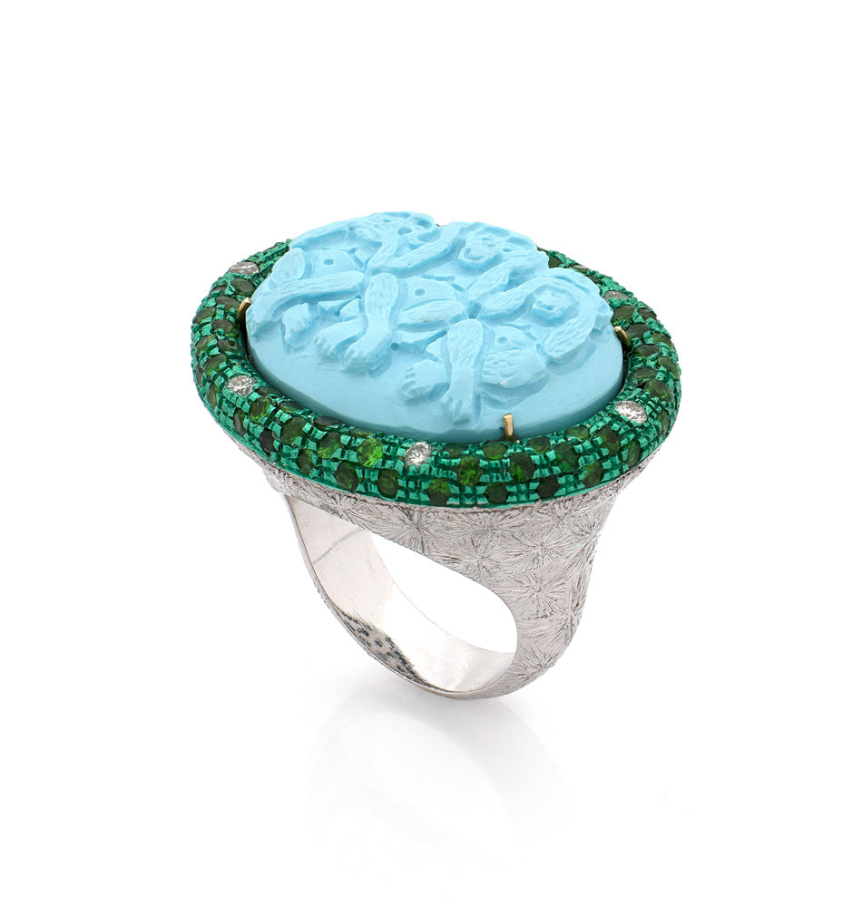 Cammeo : Cammeo turchese da 25 mm intagliato a mano
