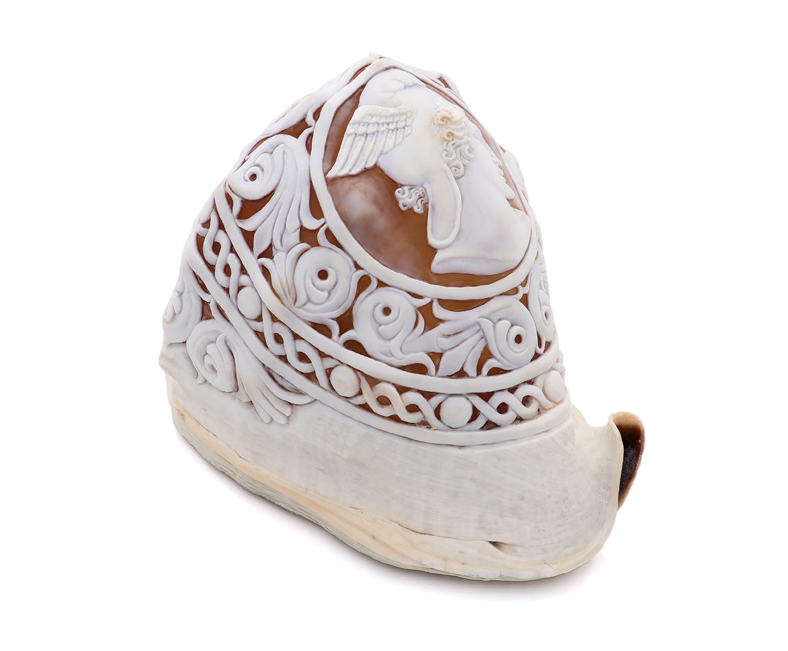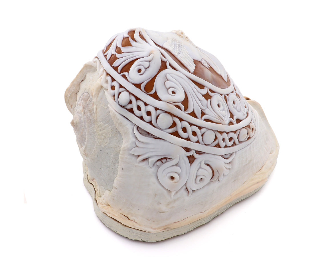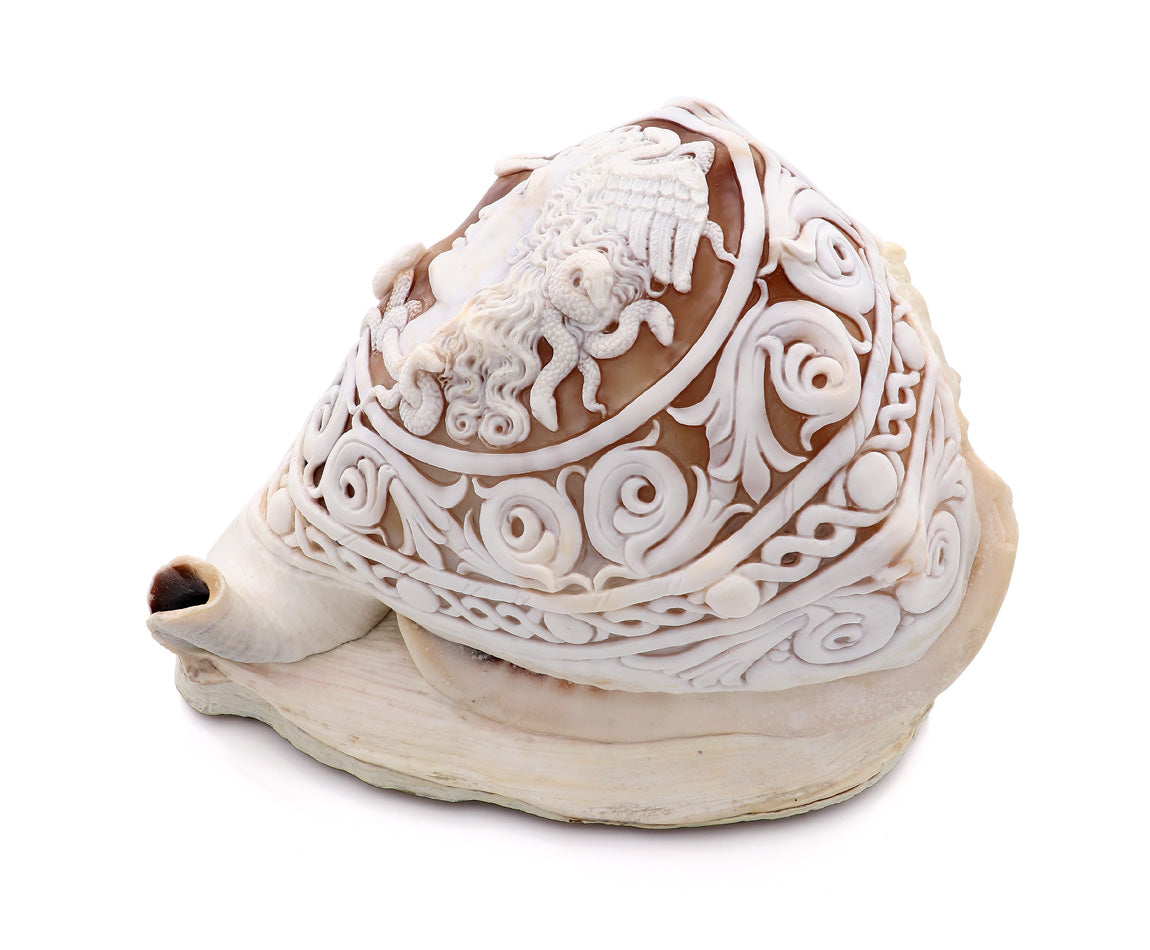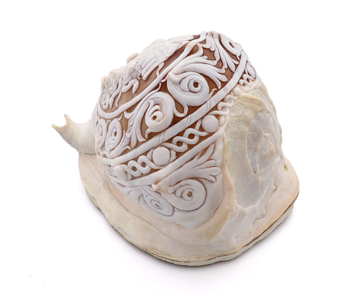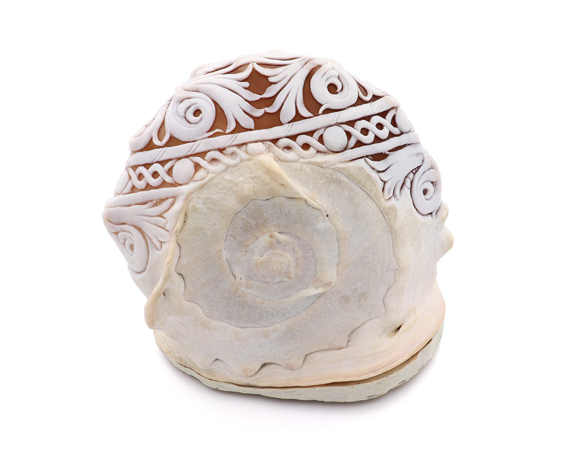 Conchiglia: Cassis Madagascariensis, intagliata a mano. Pezzo unico.