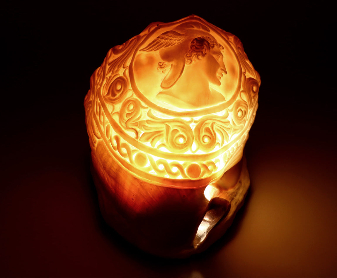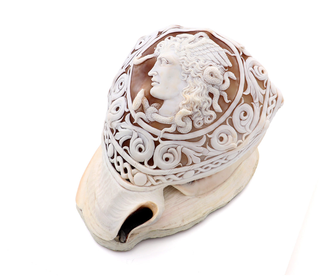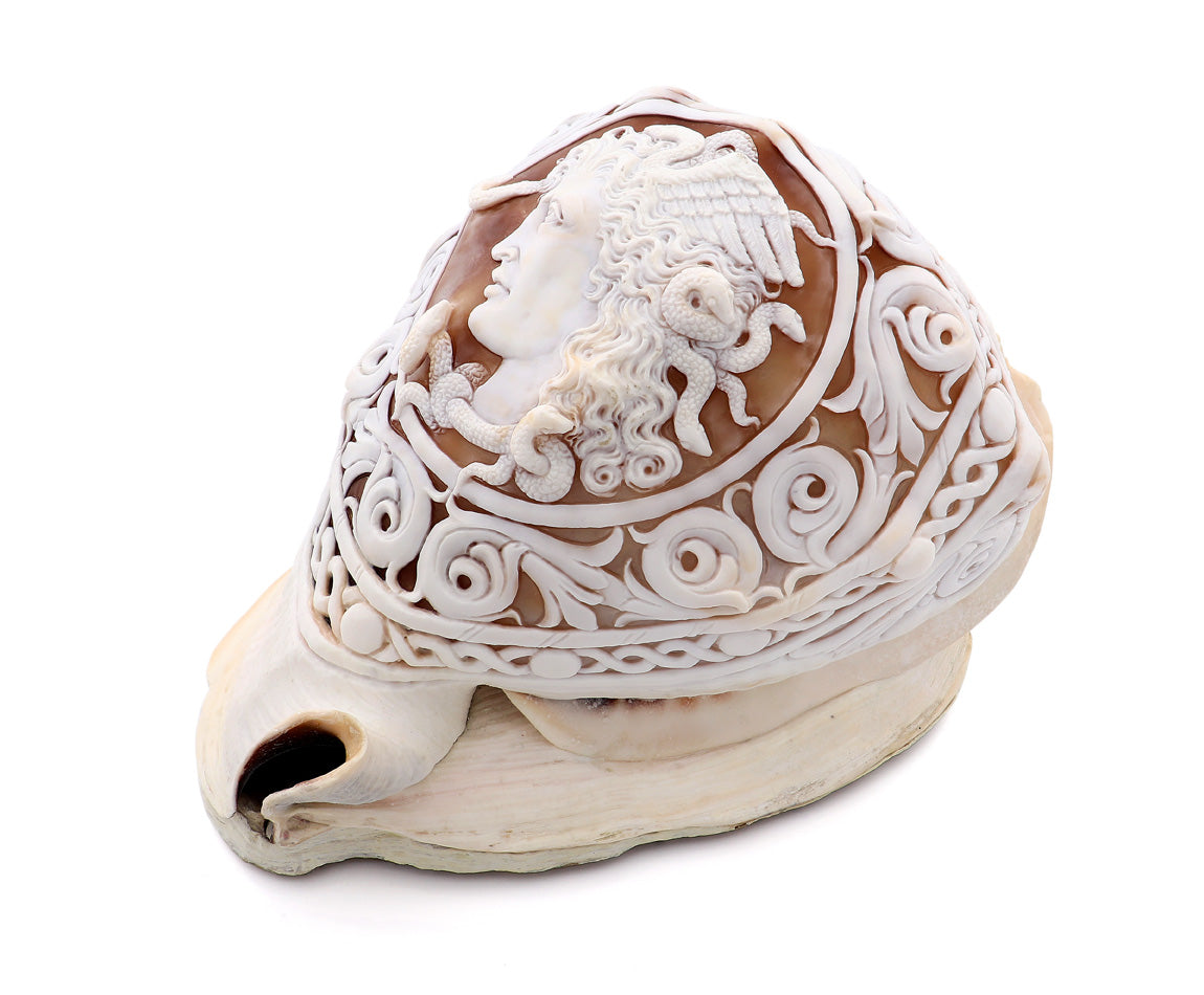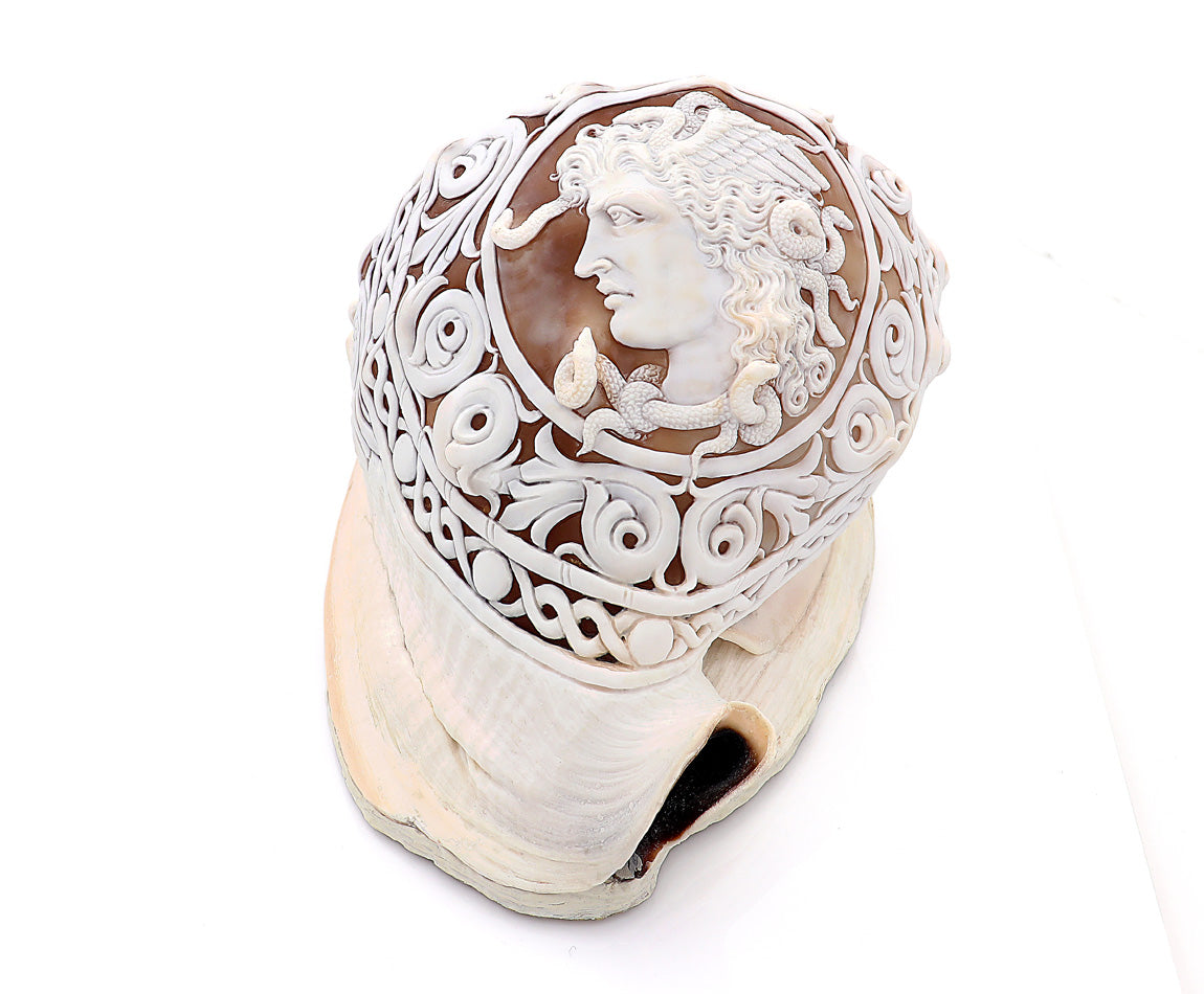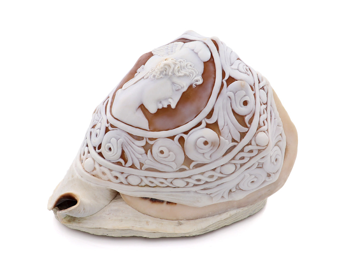 Conchiglia: Cassis Madagascariensis, intagliata a mano. Pezzo unico.