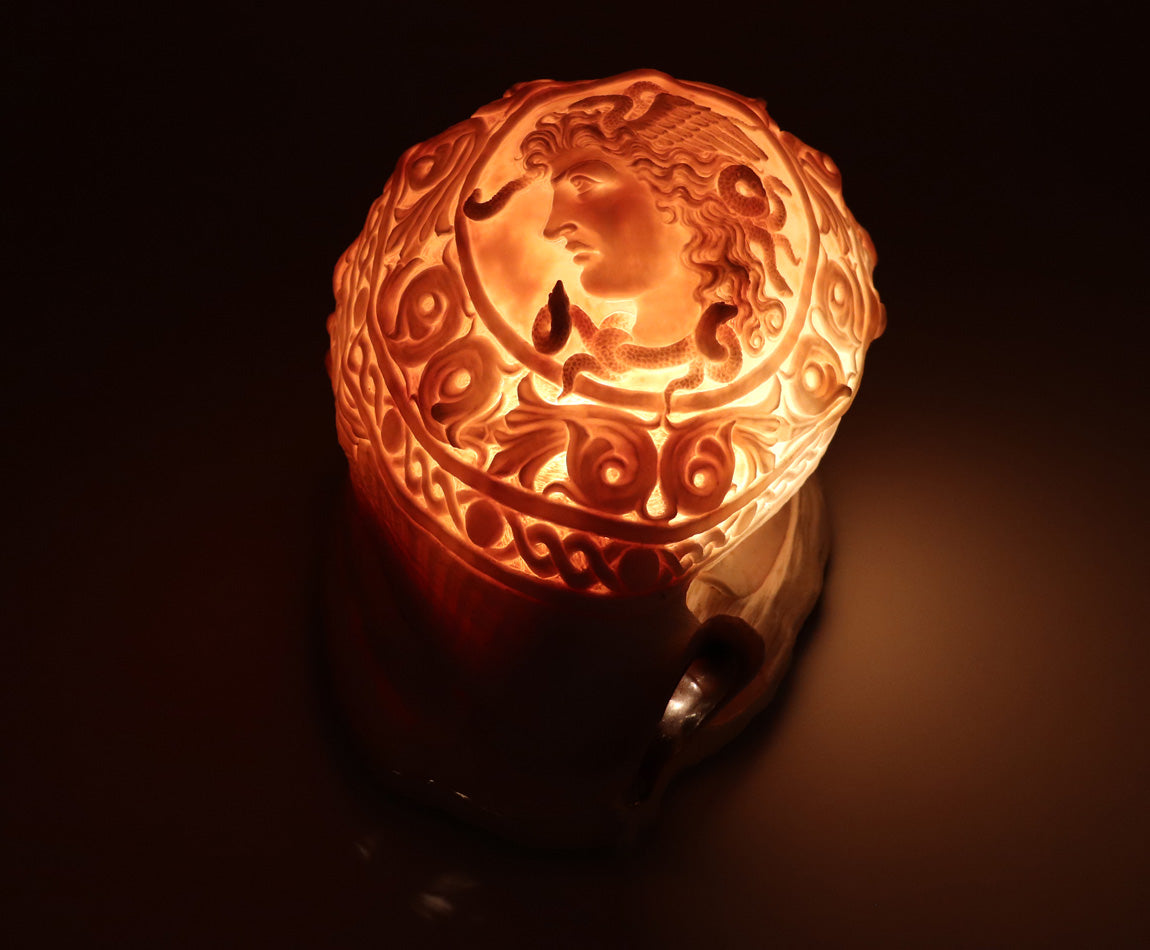 MEDUSA: Nella mitologia greca, Medusa, chiamata anche Gorgone, era una delle tre mostruose Gorgoni, generalmente descritte come donne umane alate con serpenti velenosi vivi al posto dei capelli. Chiunque la guardasse negli occhi si trasformava in pietra. La maggior parte delle fonti la descrive come la figlia di Forco e Ceto, sebbene l'autore Igino la consideri figlia di Gorgone e Ceto. Medusa fu decapitata dall'eroe greco Perseo, che in seguito usò la sua testa, che mantenne la capacità di trasformare in pietra gli astanti, come arma finché non la donò alla dea Atena perché la ponesse sul suo scudo. Nell'antichità classica l'immagine della testa di Medusa appariva nel dispositivo anti-maligno noto come Gorgoneion.