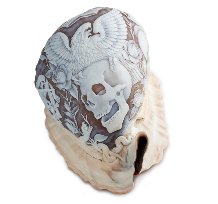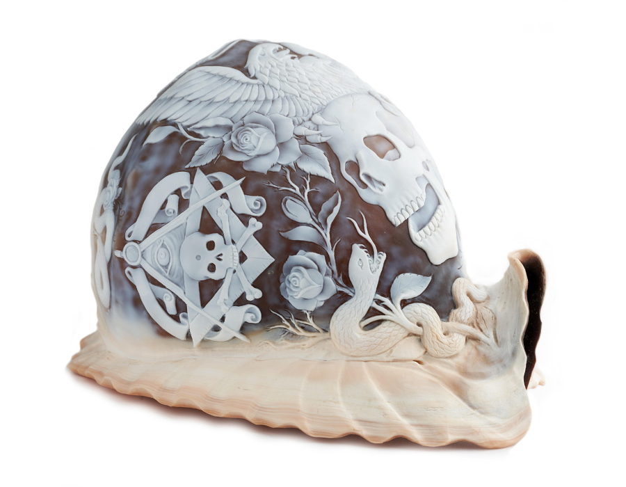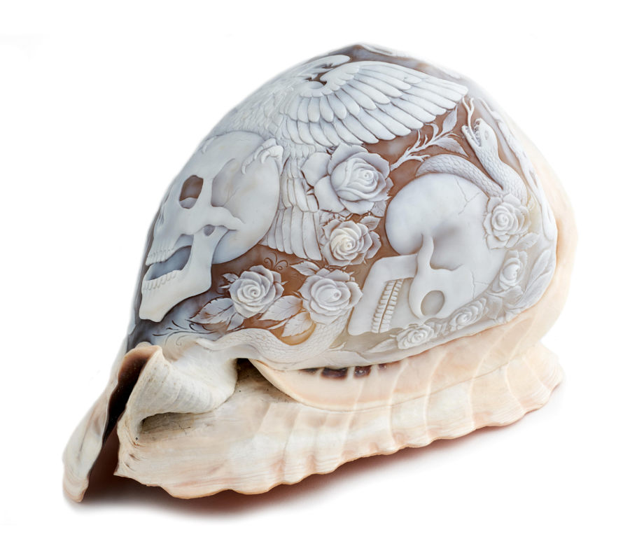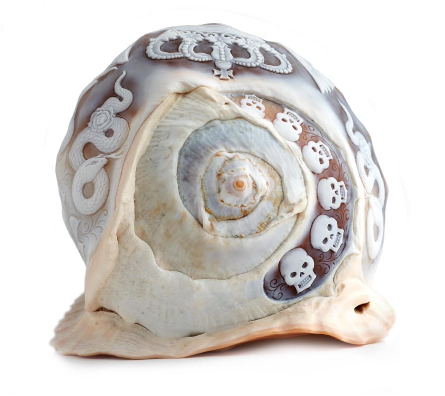 Conchiglia : Cassis Madagascariensis, intagliato a mano. Pezzo unico.