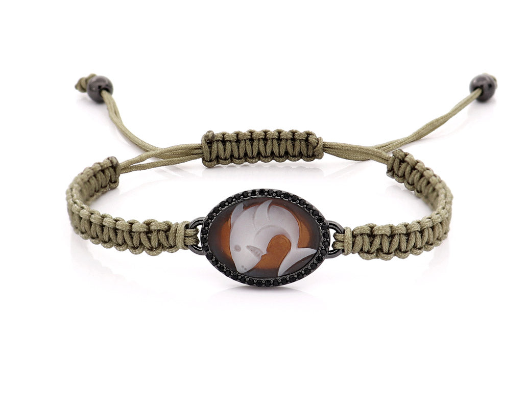 Cameo: cammeo in conchiglia sardonica da 18 mm intagliato a manoColore del metallo: tono ematite