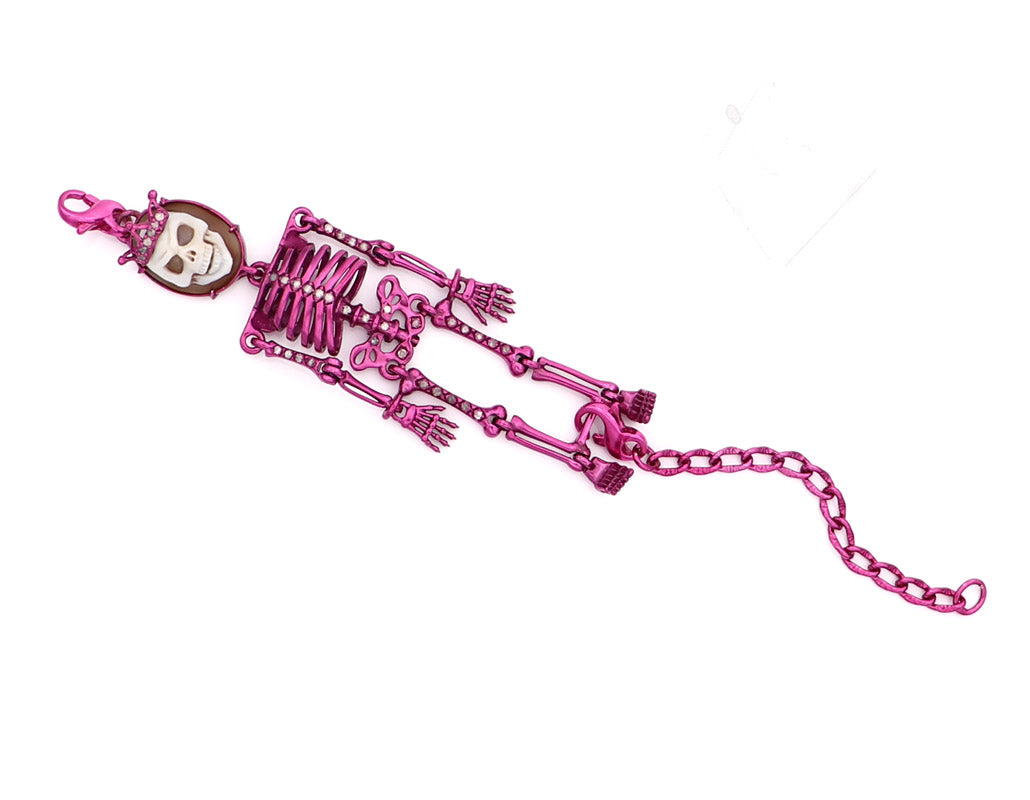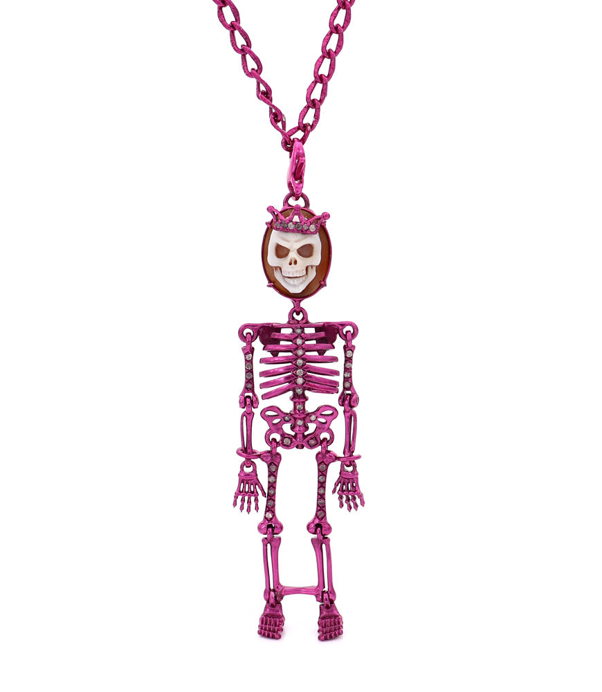 Un cammeo in conchiglia di sardonica intagliato a mano trasforma uno scheletro in una sorprendente figura di autorità e fascino. La corona, realizzata in argento sterling, è impreziosita da diamanti grigi, che aggiungono una sottile brillantezza che ne esalta la presenza imponente. Audace e raffinato al tempo stesso, questo pezzo cattura il paradosso del potere e dell'impermanenza, trasformando l'immagine di uno scheletro in un emblema sovrano che si erge oltre i confini del tempo. Più che un gioiello, è una dichiarazione d'intenti: un invito ad abbracciare l'individualità, la sicurezza e il fascino dell'inaspettato.