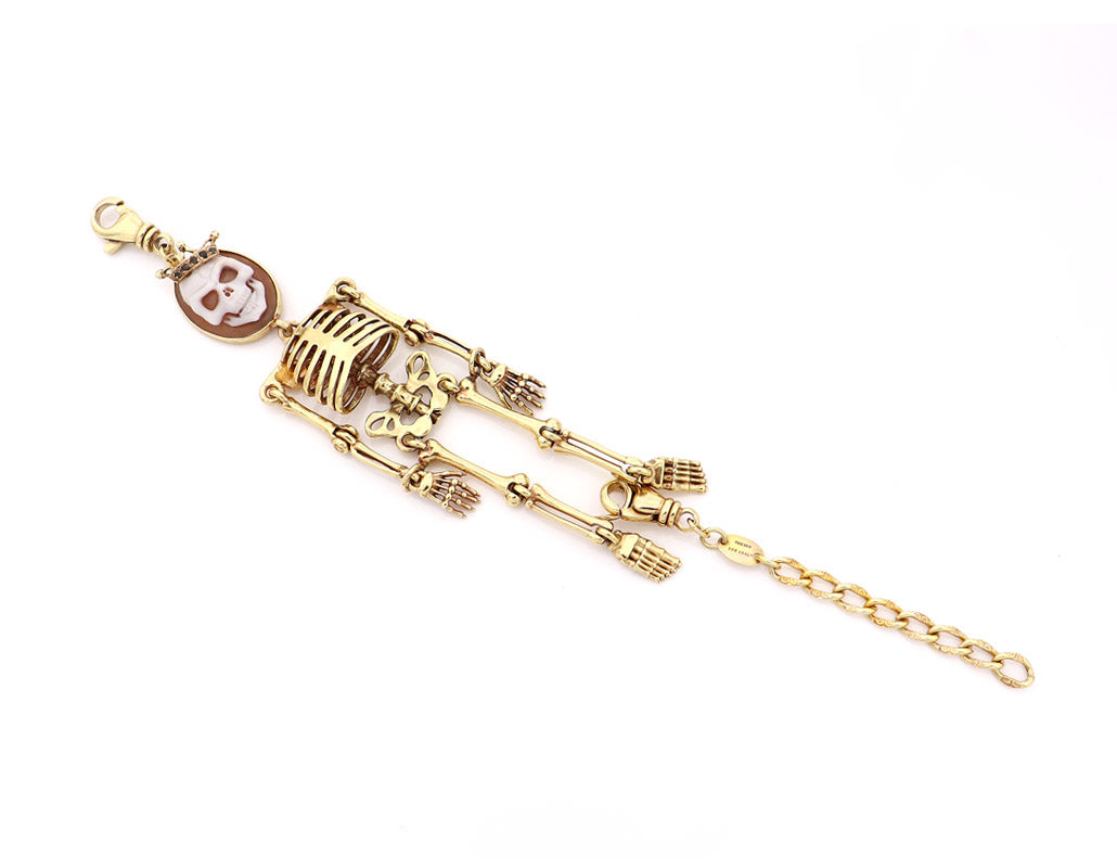 Uno scheletro incoronato, impreziosito da oro giallo 18 carati, si erge a simbolo di potere, resilienza e fascino senza tempo. La corona, impreziosita da 0,07 ct di diamanti neri, emana una brillantezza discreta, un'eco di autorità avvolta nel mistero. Questo gioiello non si limita a sfidare le convenzioni: le ridefinisce, trasformando l'immagine di uno scheletro in una figura sovrana che si erge oltre i limiti della vita. Audace e raffinato al tempo stesso, invita chi lo indossa ad abbracciare la forza, l'individualità e il fascino dell'inaspettato. Un gioiello non semplicemente da indossare, ma da incarnare, un promemoria che la vera presenza comanda senza parole.