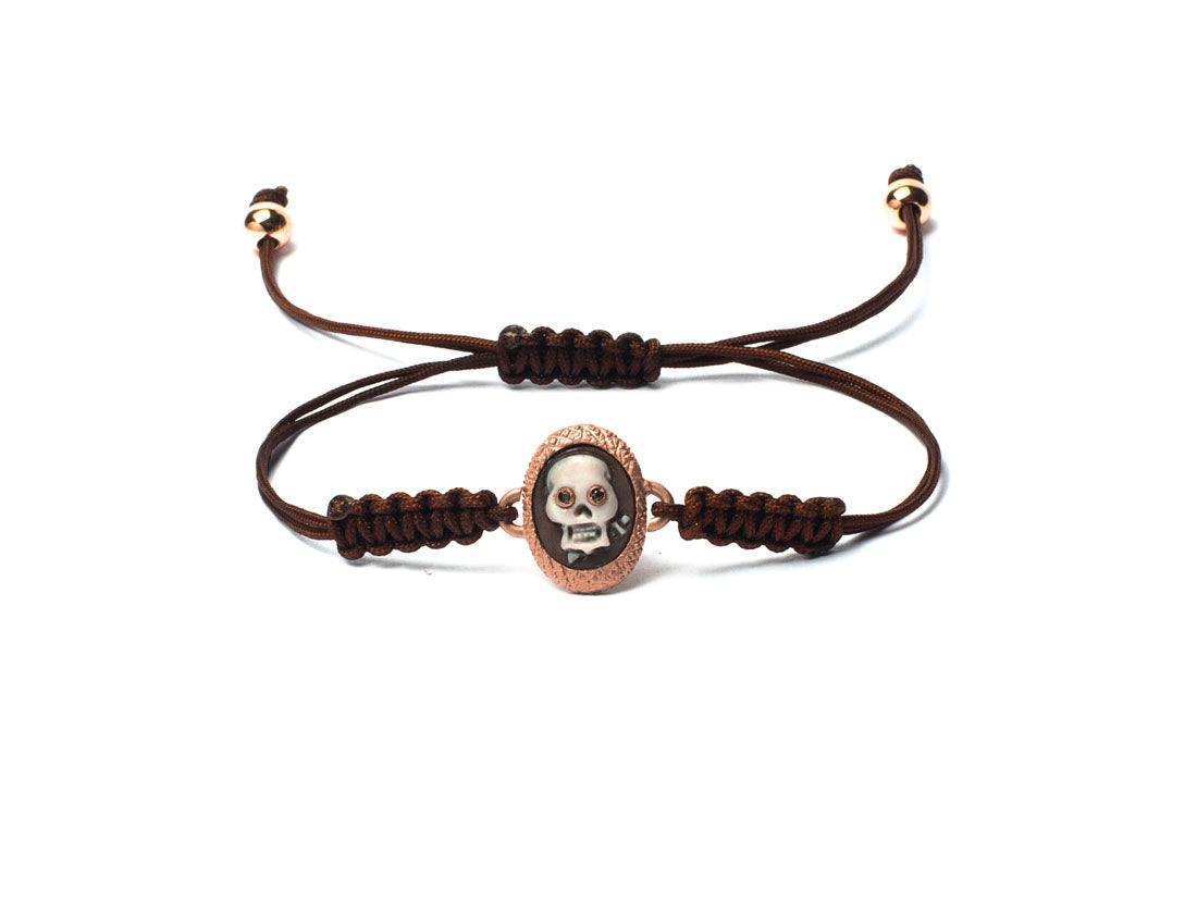 Questo anello con cammeo in conchiglia di sardonica da 12 mm, intagliato a mano, presenta un sorprendente motivo a teschio, incastonato in argento sterling con placcatura in rodio rosa e impreziosito da diamanti neri. Piccolo ma audace, trasforma un classico simbolo di mortalità in una dichiarazione di individualità e stile audace. Perfetto per chi apprezza la raffinata artigianalità con un tocco audace, questo anello è più di un semplice gioiello: è un emblema di carattere, carattere e raffinatezza senza tempo.
