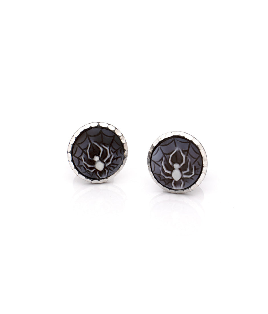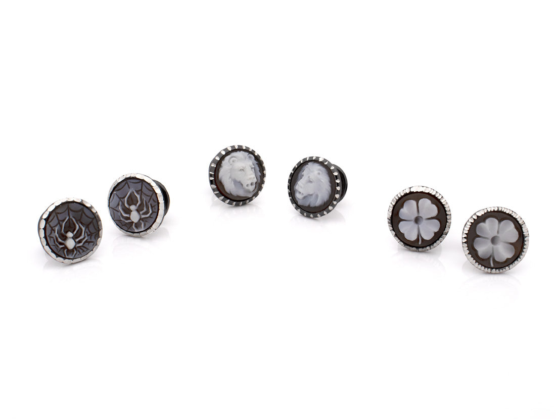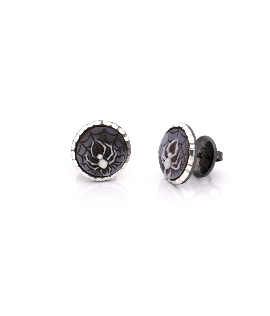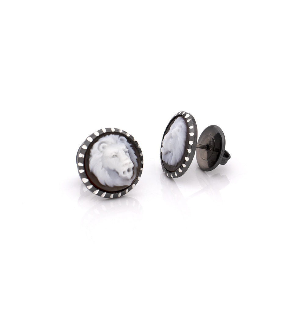 Cameo: orecchini a bottone con cammeo in conchiglia sardonica da 12 mm, intagliati a manoMetallo: argento sterling rodiato nero