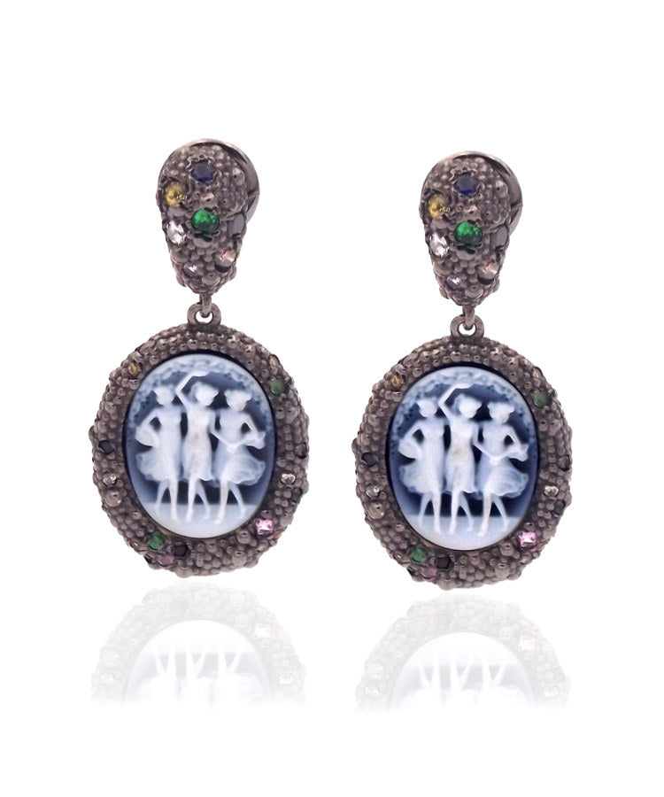 Cammeo : Cammeo in agata blu da 25 mm intagliato a mano