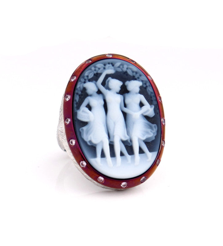 Cammeo: agata 30mm intagliata a manoMetallo: argento sterling rodio bianco e titanio