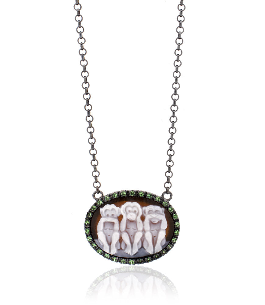Questo eccezionale pezzo raffigura le "Tre Scimmie Sagge", l'intramontabile proverbio giapponese: non vedere il male, non sentire il male, non parlare del male. Il cammeo è una testimonianza di maestria artigianale, con ogni scimmia finemente scolpita nei minimi dettagli, incarnando saggezza, consapevolezza ed equilibrio.