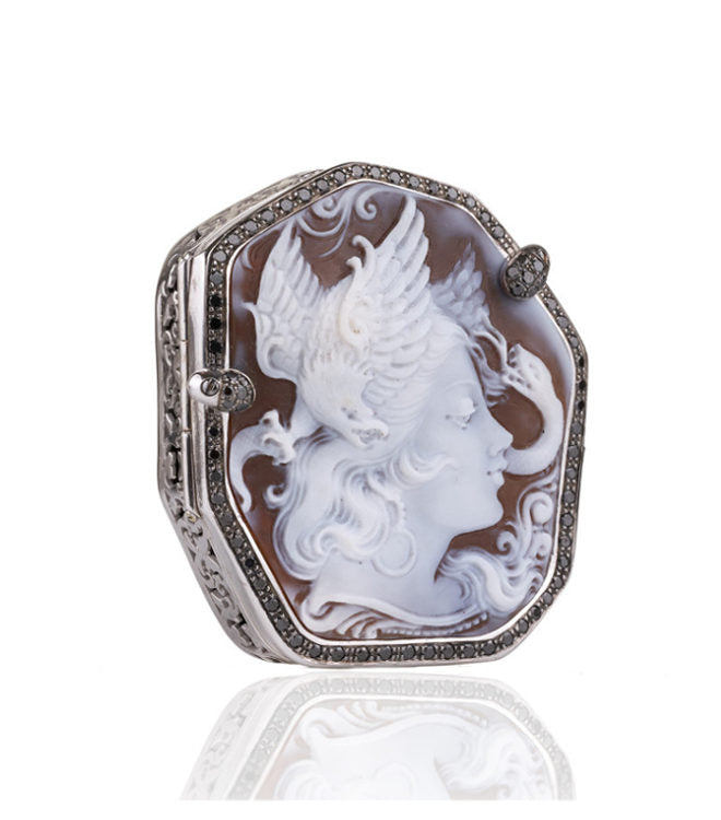 Cameo: cammeo in conchiglia sardonica da 50 mm intagliato a mano