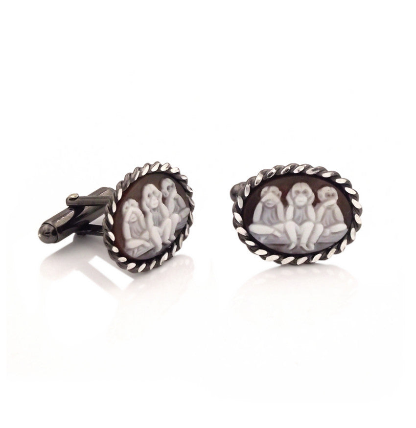 Questo eccezionale pezzo raffigura le "Tre Scimmie Sagge", l'intramontabile proverbio giapponese: non vedere il male, non sentire il male, non parlare del male. Il cammeo è una testimonianza di maestria artigianale, con ogni scimmia finemente scolpita nei minimi dettagli, incarnando saggezza, consapevolezza ed equilibrio.