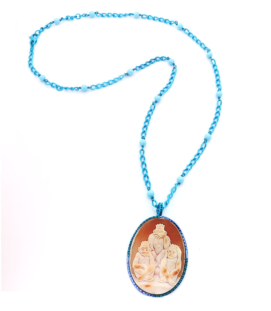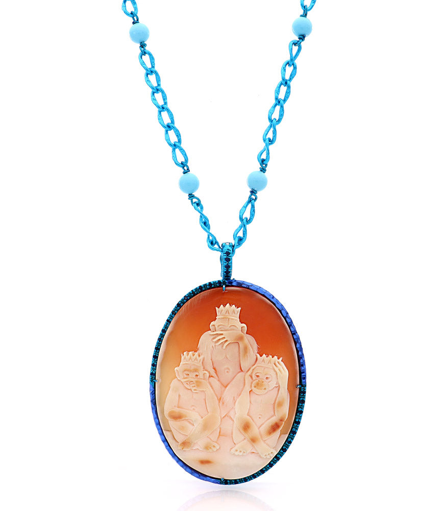 Questo eccezionale pezzo raffigura le "Tre Scimmie Sagge", l'intramontabile proverbio giapponese: non vedere il male, non sentire il male, non parlare del male. Il cammeo è una testimonianza di maestria artigianale, con ogni scimmia finemente scolpita nei minimi dettagli, incarnando saggezza, consapevolezza ed equilibrio.