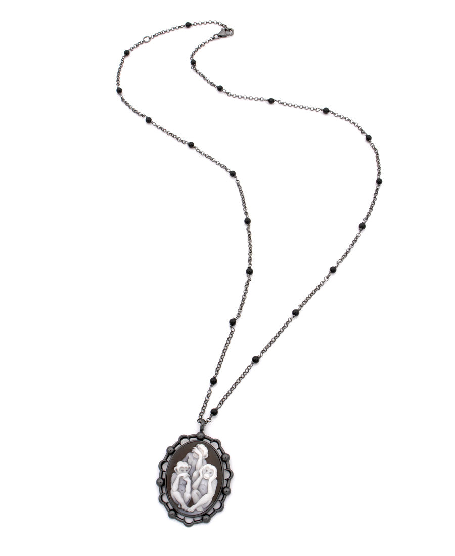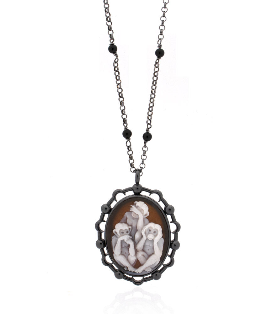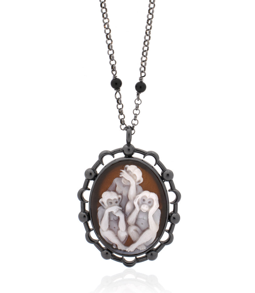 Questo eccezionale pezzo raffigura le "Tre Scimmie Sagge", l'intramontabile proverbio giapponese: non vedere il male, non sentire il male, non parlare del male. Il cammeo è una testimonianza di maestria artigianale, con ogni scimmia finemente scolpita nei minimi dettagli, incarnando saggezza, consapevolezza ed equilibrio.