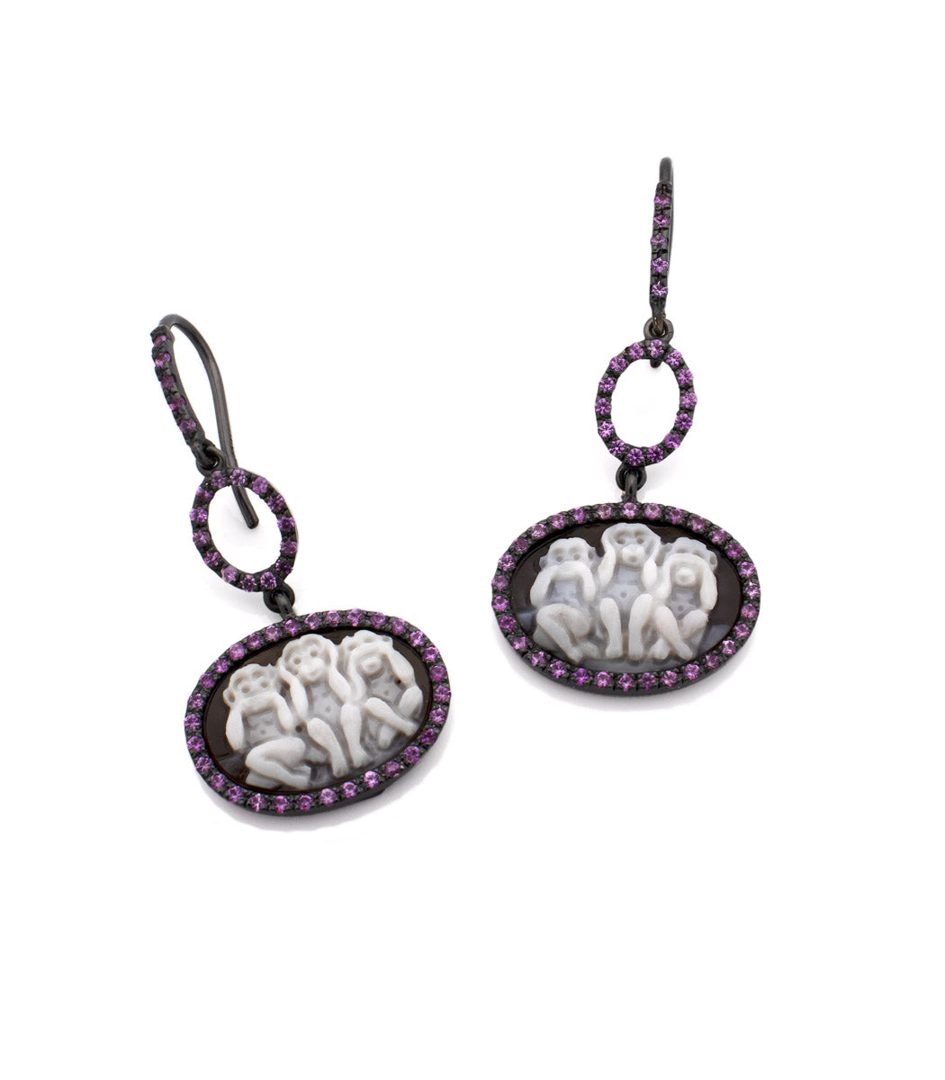 Questo eccezionale pezzo raffigura le "Tre Scimmie Sagge", l'intramontabile proverbio giapponese: non vedere il male, non sentire il male, non parlare del male. Il cammeo è una testimonianza di maestria artigianale, con ogni scimmia finemente scolpita nei minimi dettagli, incarnando saggezza, consapevolezza ed equilibrio.