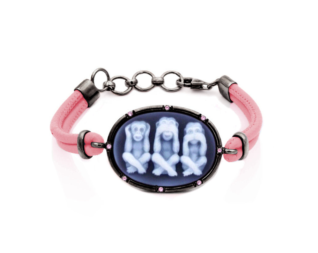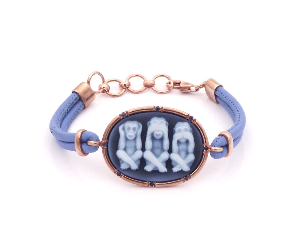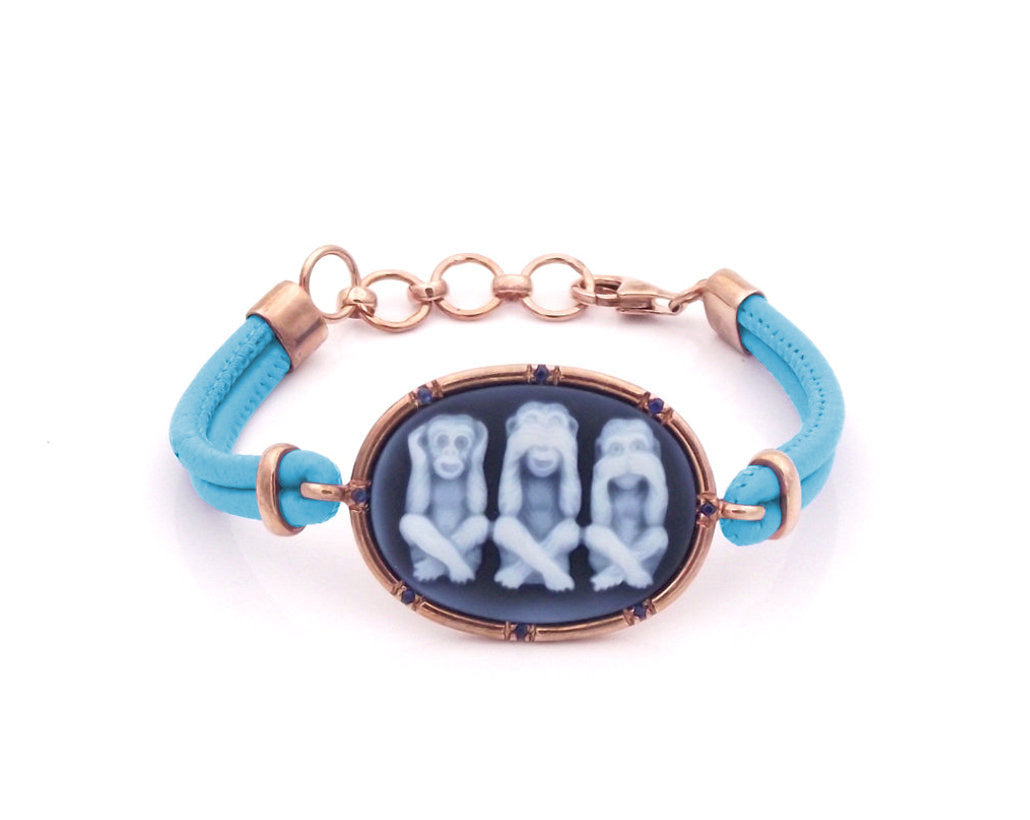 Questo eccezionale pezzo raffigura le "Tre Scimmie Sagge", l'intramontabile proverbio giapponese: non vedere il male, non sentire il male, non parlare del male. Il cammeo è una testimonianza di maestria artigianale, con ogni scimmia finemente scolpita nei minimi dettagli, incarnando saggezza, consapevolezza ed equilibrio.