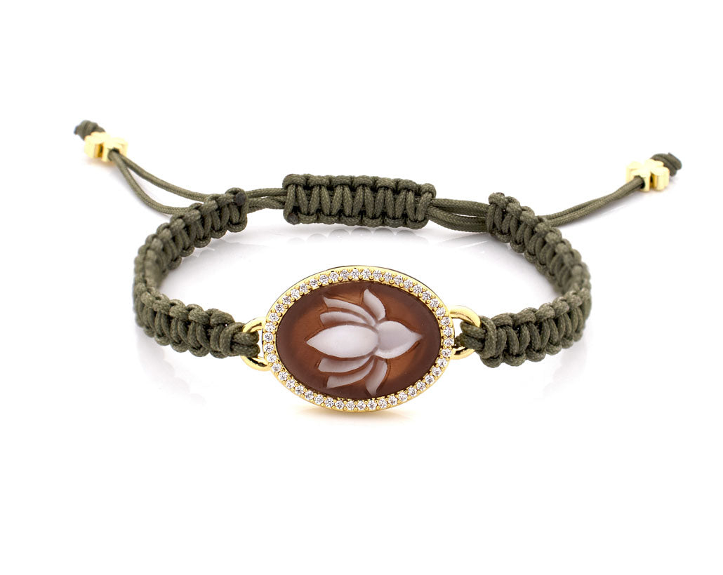 Hand-carved cameo bracelet depicting the Lotus Flower, symbol of purity, renewal, and spiritual awakening. Rising unstained from the depths, the lotus reminds us that true beauty and strength are born from within.