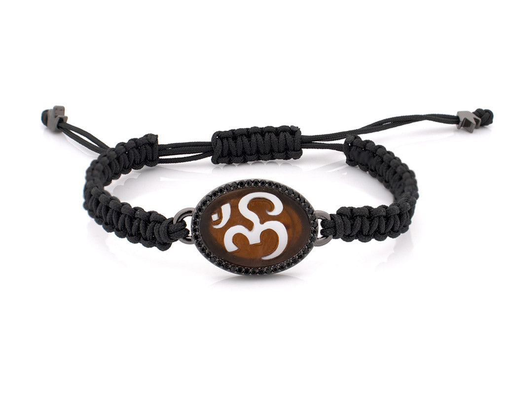 Hand-carved cameo bracelet depicting the sacred Om symbol — the primordial sound from which all creation flows. A timeless emblem of spiritual harmony and inner peace, connecting the wearer to the divine rhythm of the cosmos.