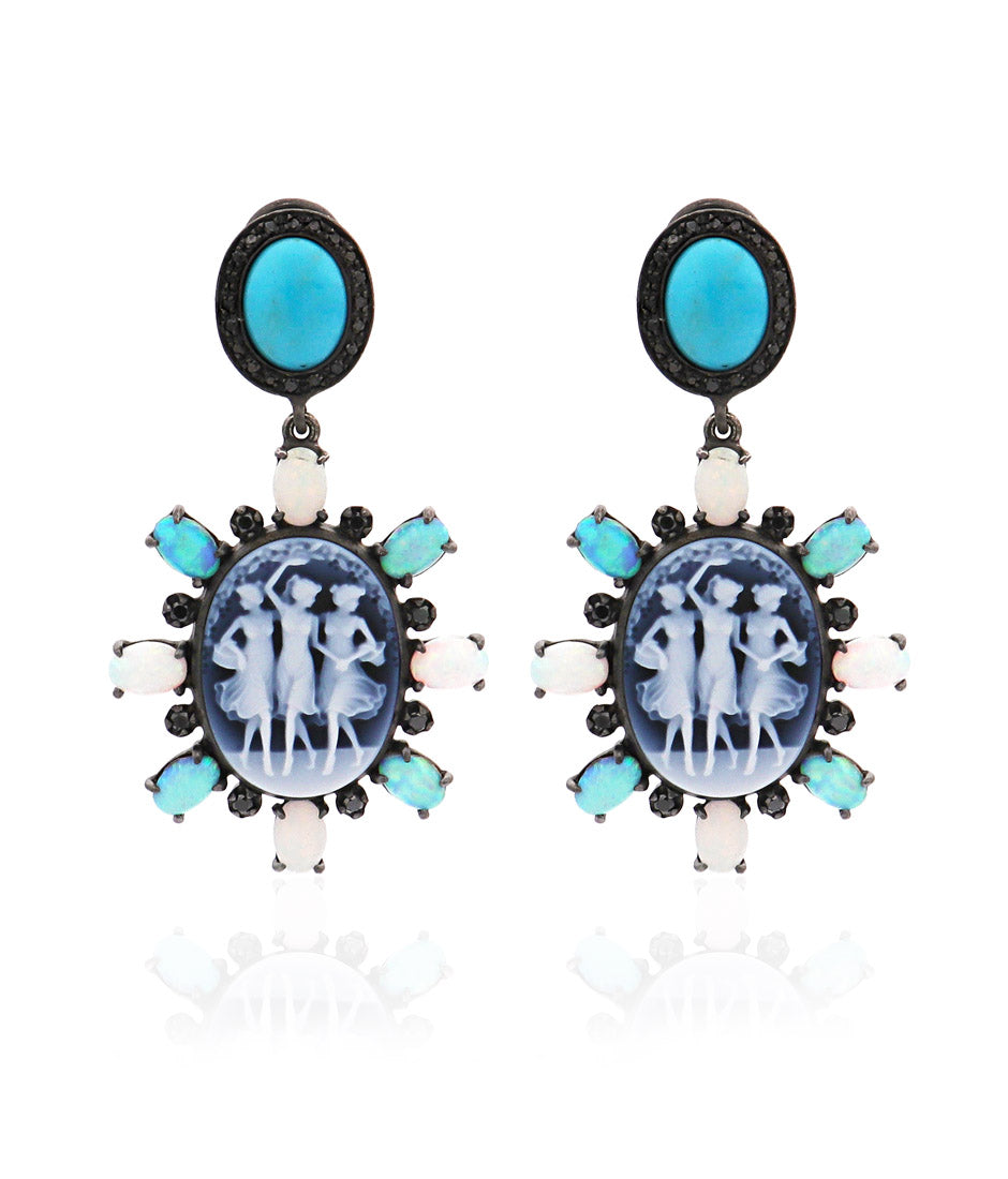 Stones: turquoise cabochons with opals and 0.65ct black diamonds