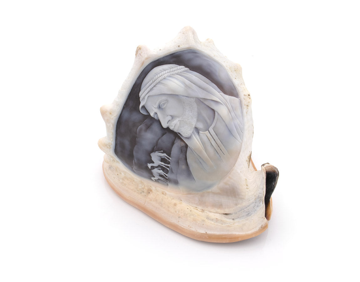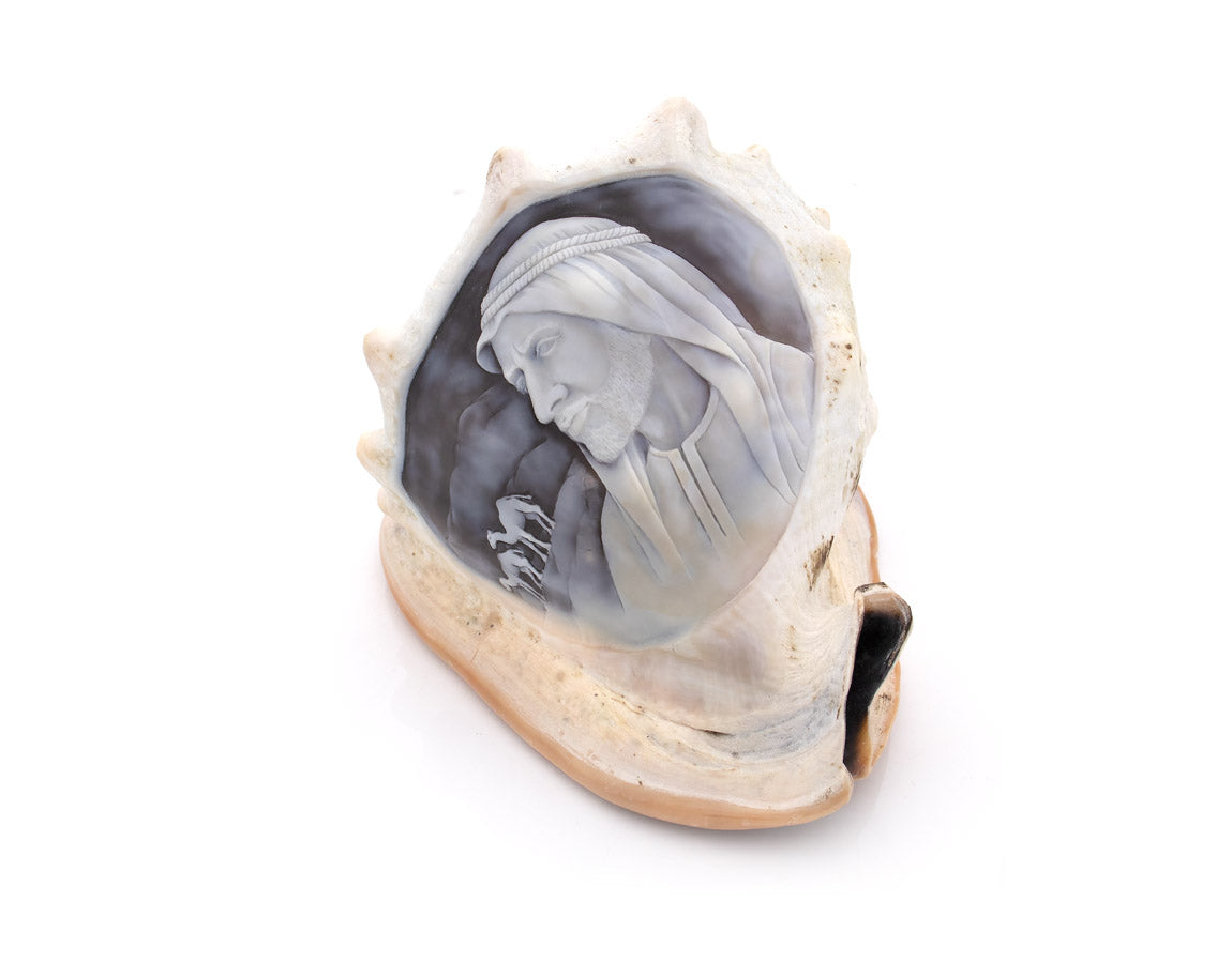 Tribute to Sheikh Zayed is a hand-carved shell cameo honoring the legacy and vision of a remarkable leader. A unique piece where Italian craftsmanship transforms history, respect, and heritage into timeless art.