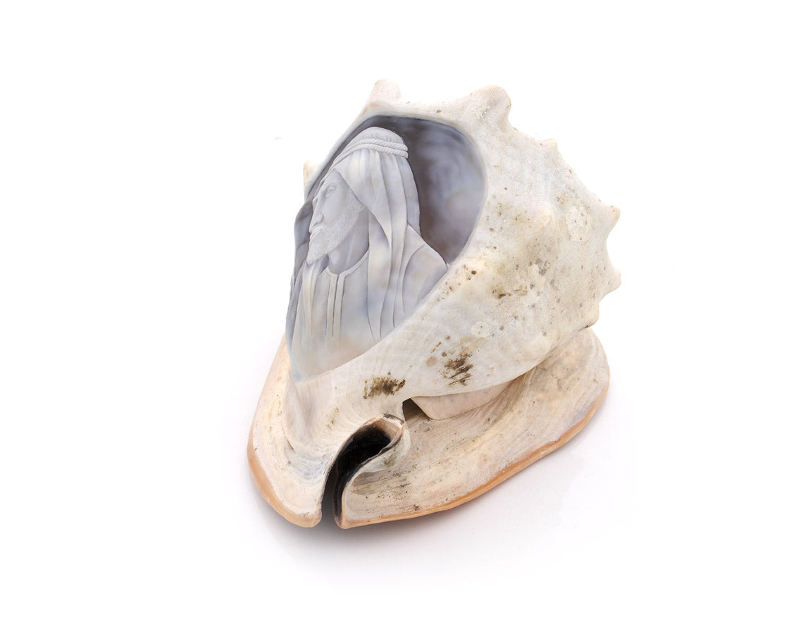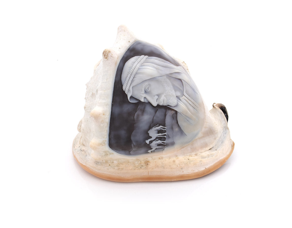 Shell : Cassis Madagascariensis, Hand-Carved. One of a kind.