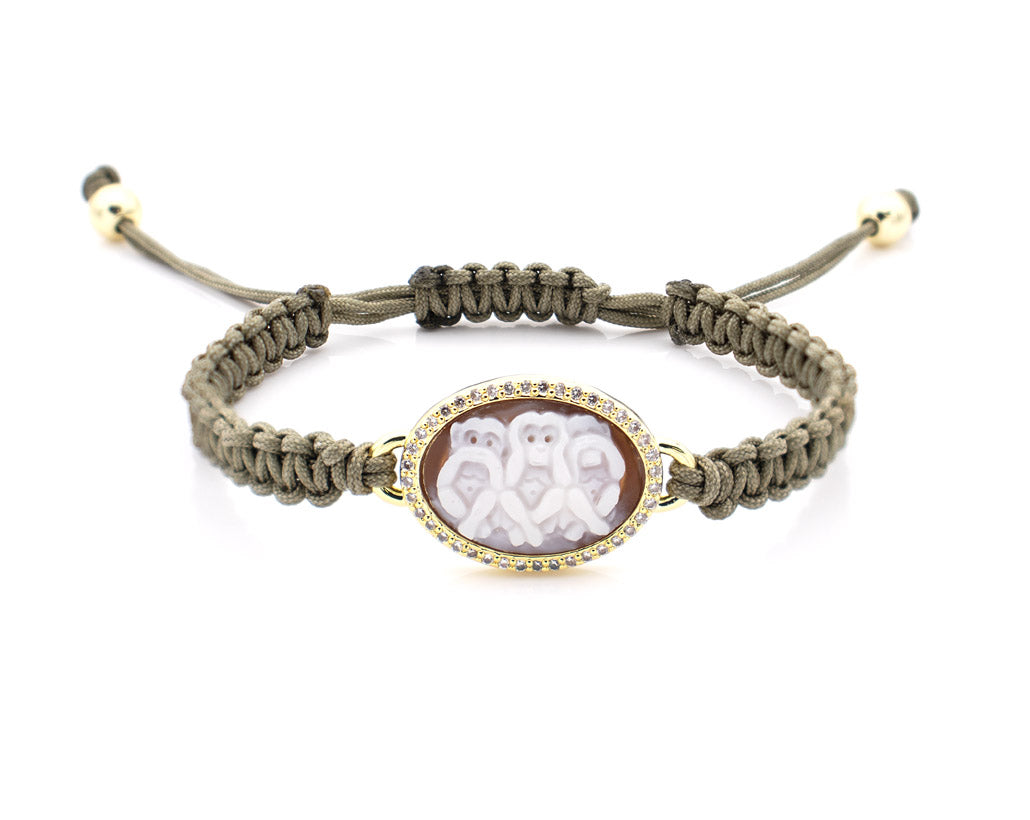 This exceptional piece showcases the “Three Wise Monkeys,” the timeless Japanese proverb: See no evil, hear no evil, speak no evil. The cameo is a testament to masterful craftsmanship, with each monkey intricately carved in fine detail, embodying wisdom, mindfulness, and balance.