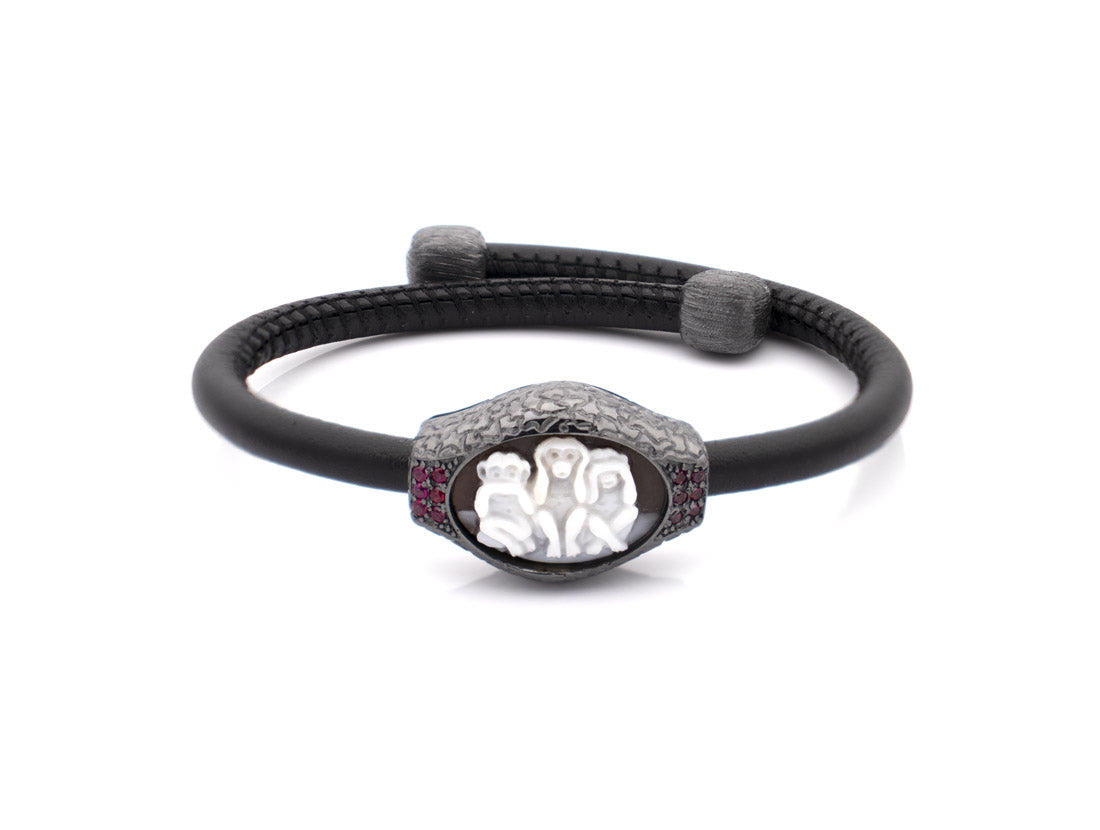 This exceptional piece showcases the “Three Wise Monkeys,” the timeless Japanese proverb: See no evil, hear no evil, speak no evil. The cameo is a testament to masterful craftsmanship, with each monkey intricately carved in fine detail, embodying wisdom, mindfulness, and balance.